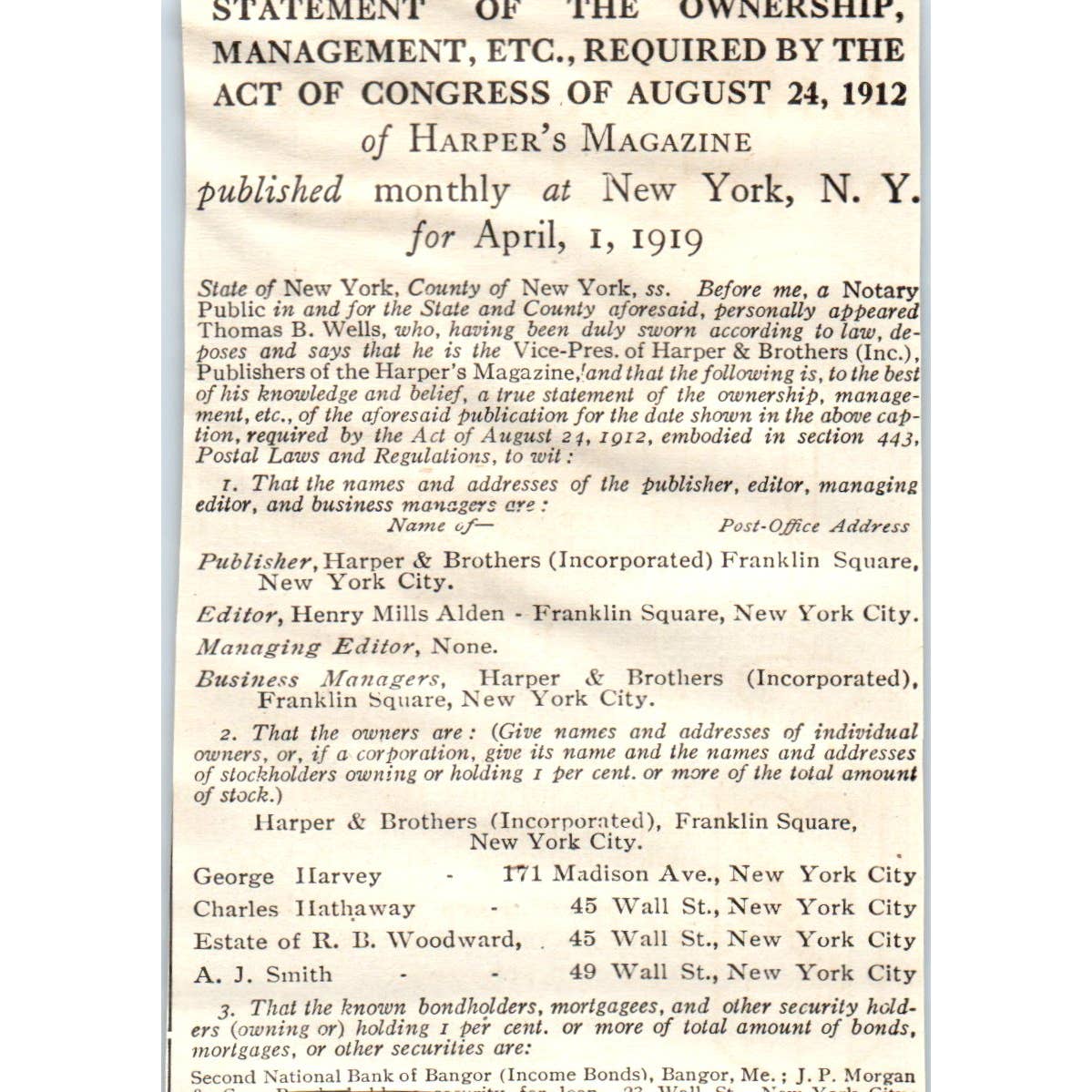 Has ripples. Original print ad taken from a c1920 Harper's Magazine. See pics for condition.