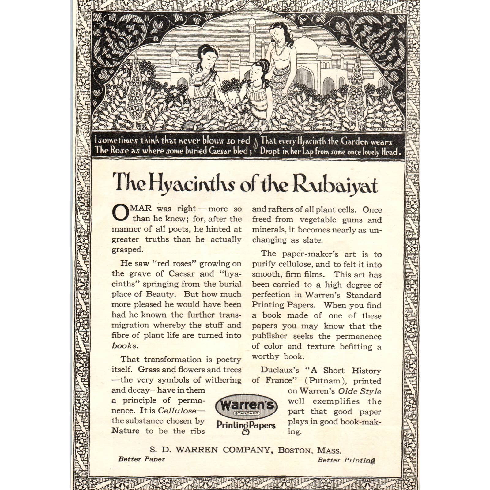 c1920 Harper's Magazine Ad - The Hyacinths of the Rubaiyat S.D. Warren Co TF6-1