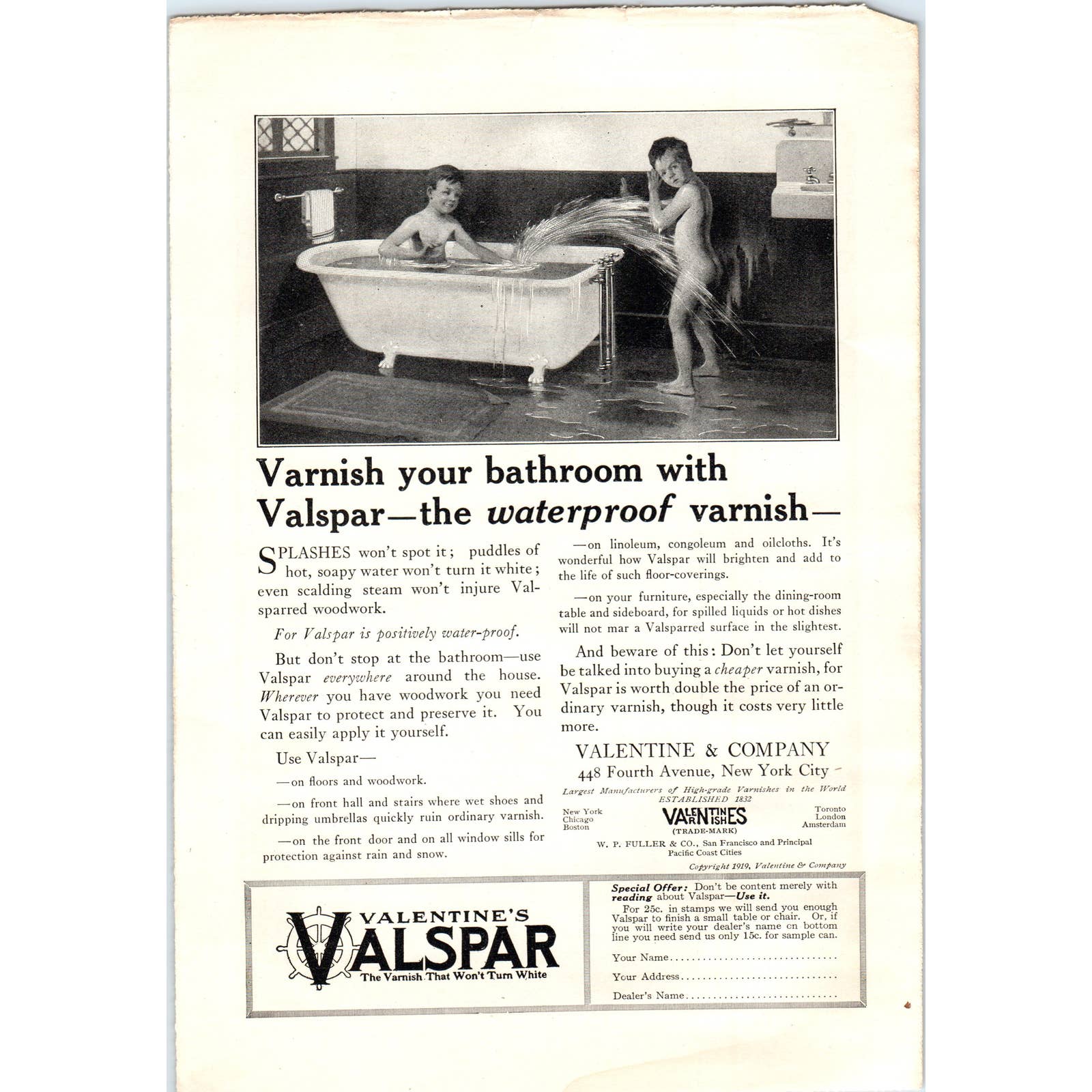 c1920 Harper's Magazine Ad - Valentine's Valspar Waterproof Bathroom Varnish EA3