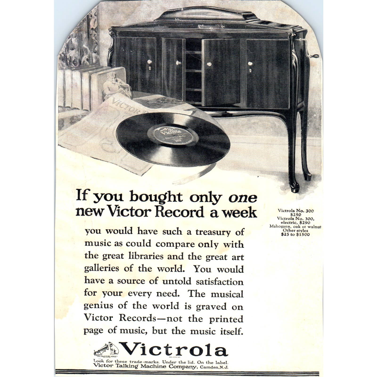 c1920 Harper's Magazine Ad - Victrola Record Player TF6-1