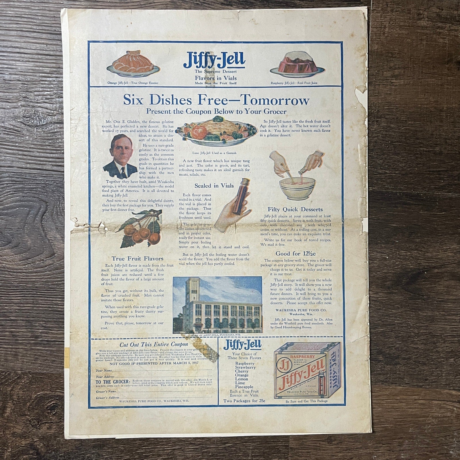 c1920 Jiffy-Jell The Supreme Dessert Gelatin Vintage Magazine Ad 11x14 V9