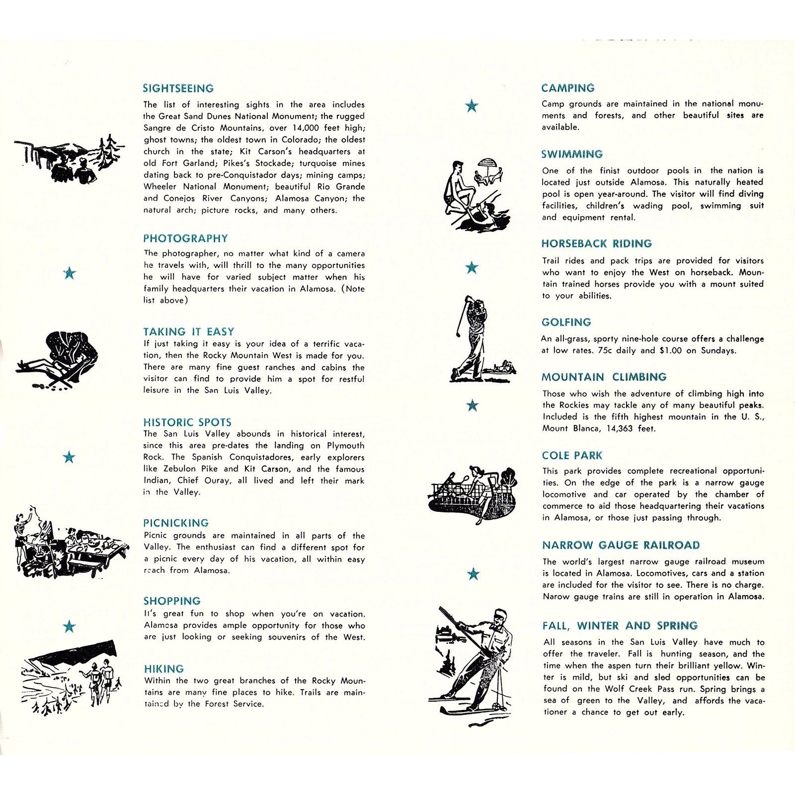 c1950 Alamosa Colorado Fold Out Travel Information Guide Leaflet AF9-2