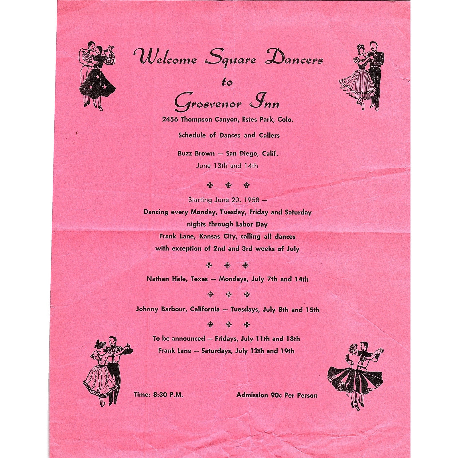 c1950 Welcome Square Dancers to Grosvenor Inn San Diego Information Leaflet AF9-2