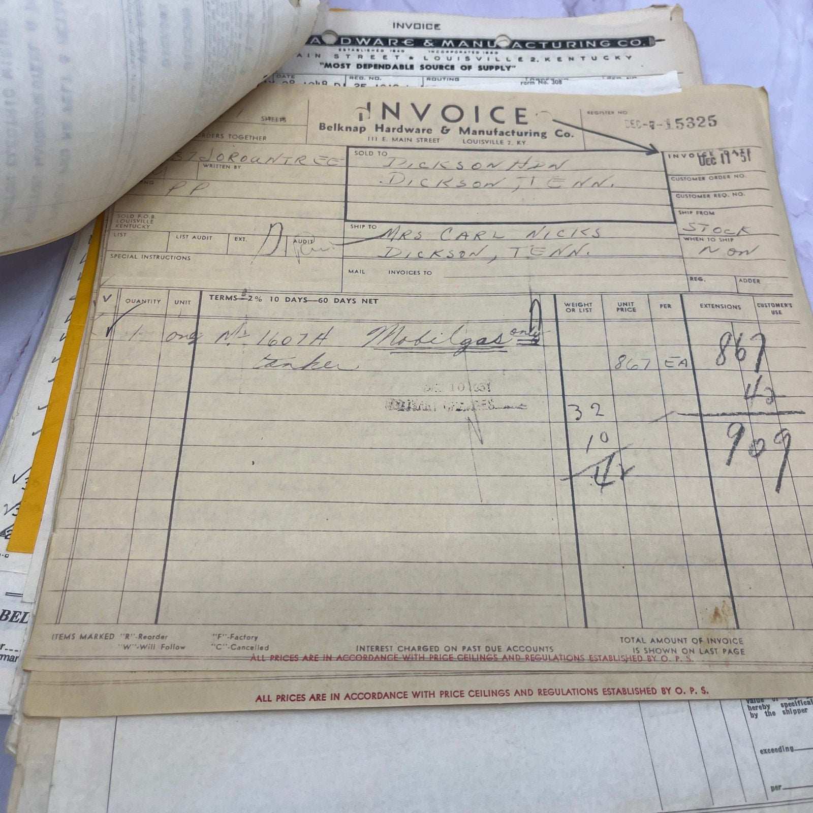 c1951 Huge Lot of Belknap Hardware & Mfg Co Louisville KY Billhead Invoices TC5