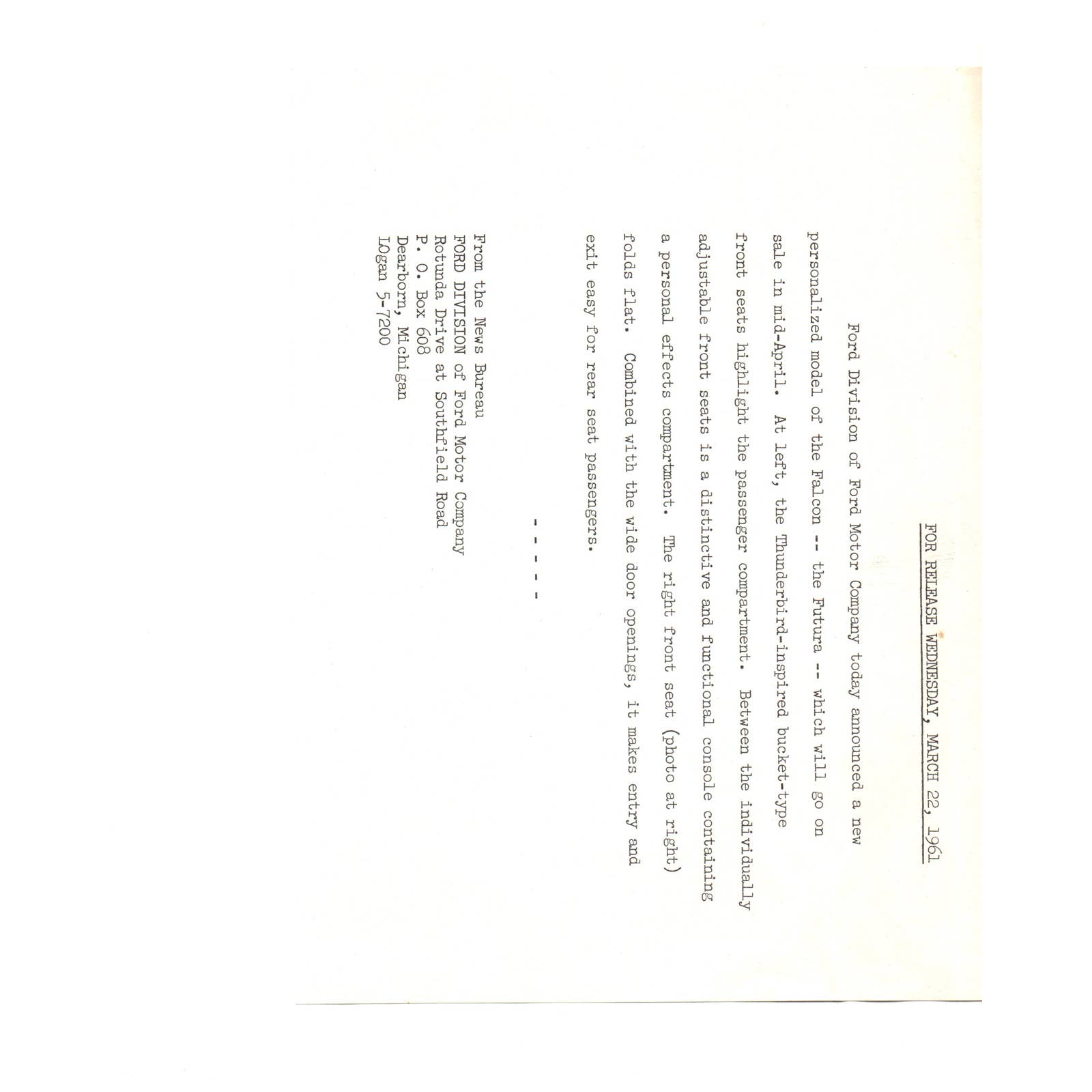 c1960 Original Press Photo 1961 Ford Futura Front & Back Interior Promo AE1