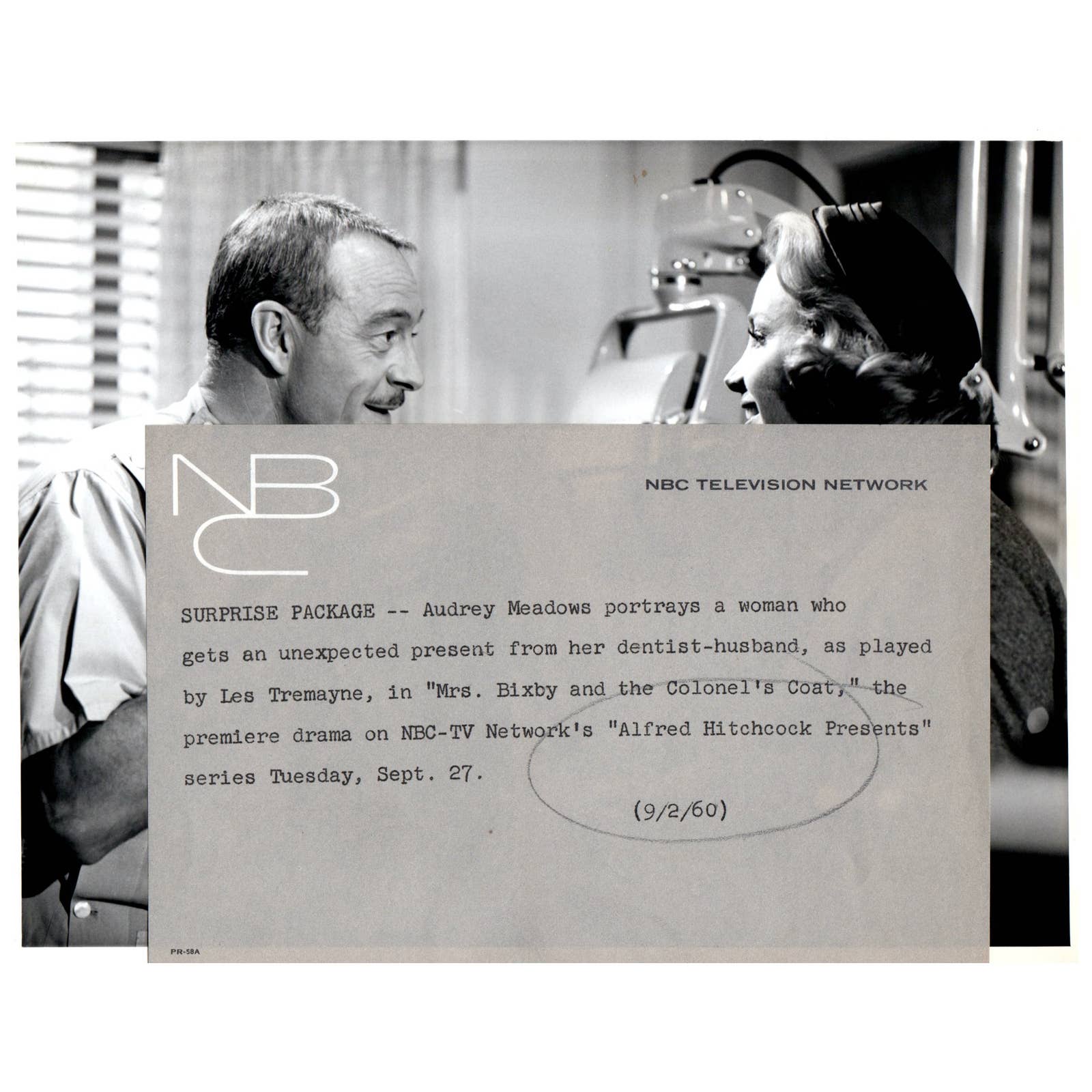 c1960 Press Photo Alfred Hitchcock Presents Les Tremayne & Audrey Meadows Mrs. Bixby and the Colonel's Coat NBC TJ7-2
