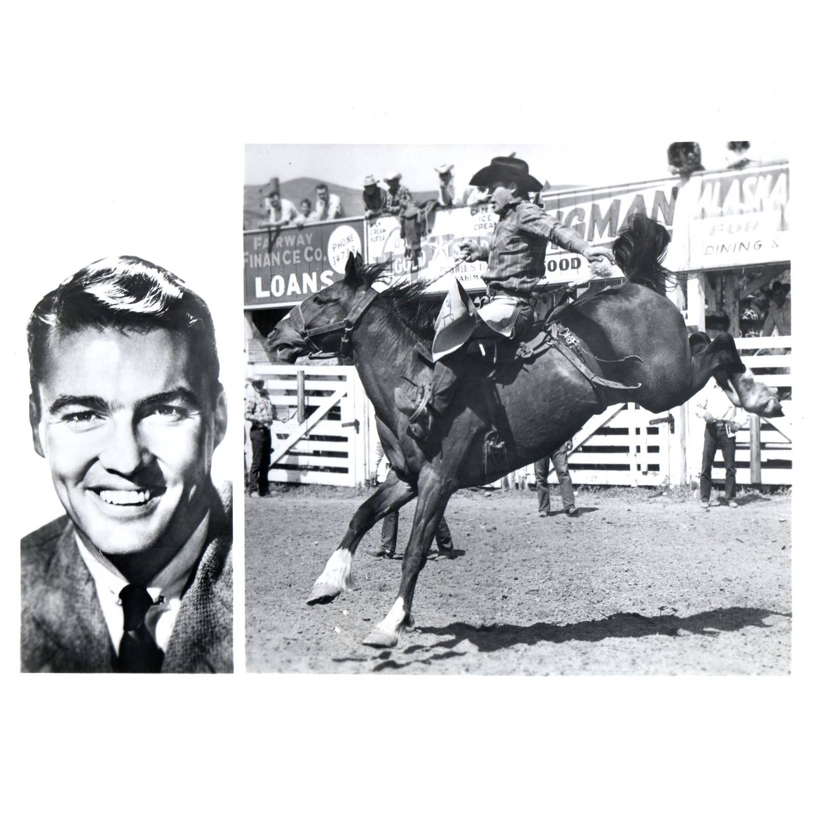c1960 Press Photo Bud Palmer Bronco Busting Sunday Sports Spectacular CBS TJ7-2