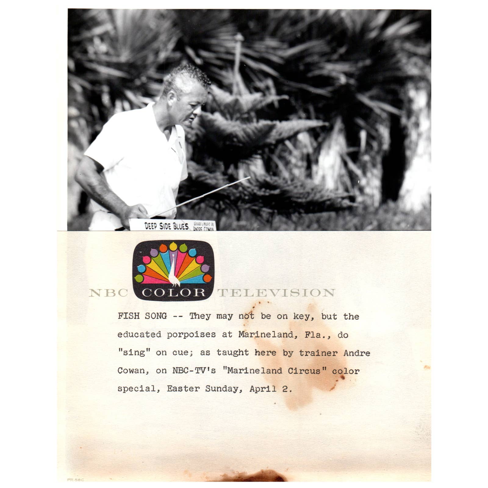c1960 Press Photo Dolphin Trainer Andre Cowan Marineland Circus NBC TJ7-2