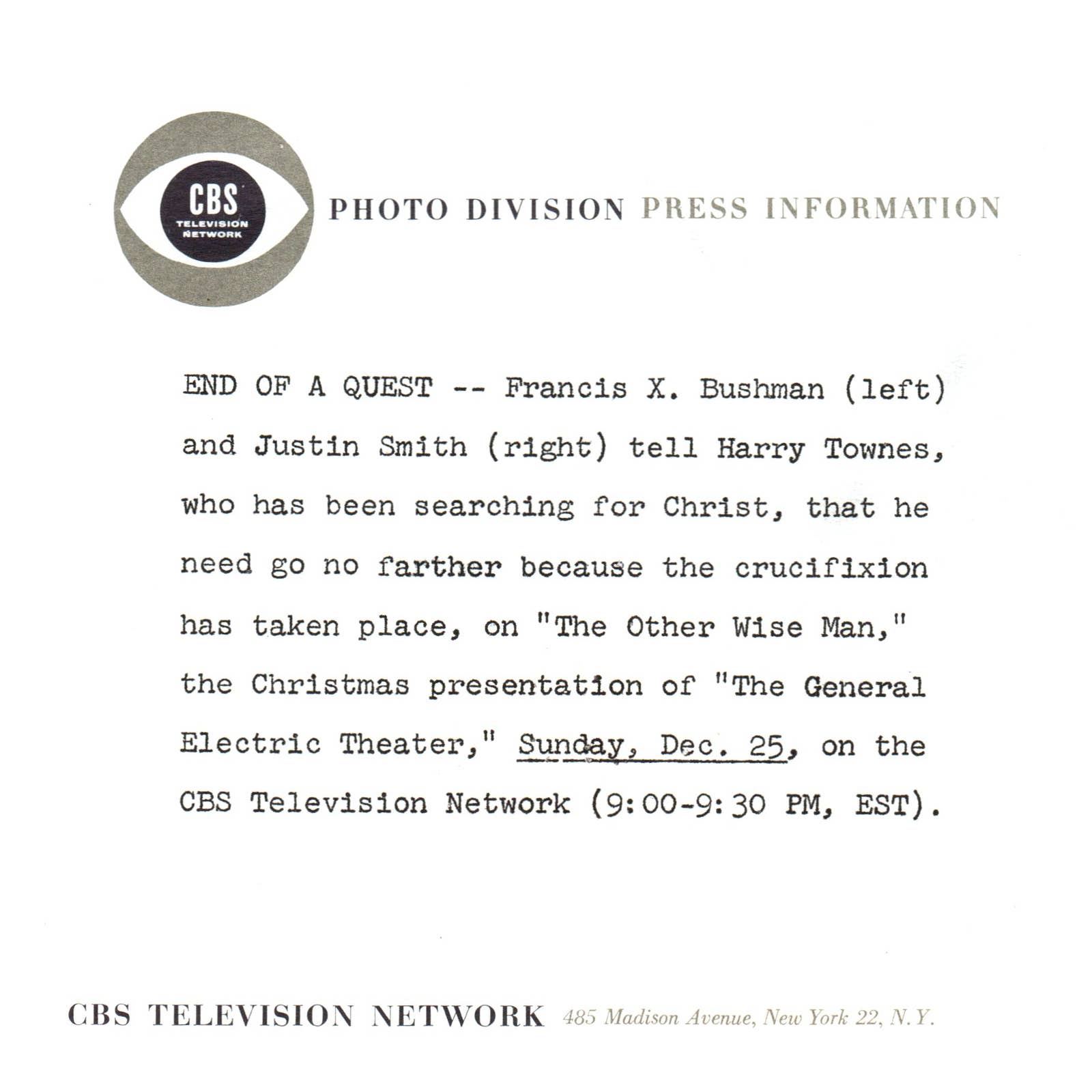 c1960 Press Photo Francis Bushman Harry Townes Justin Smith The Other Wise Man General Electric Theater CBS TJ7-2