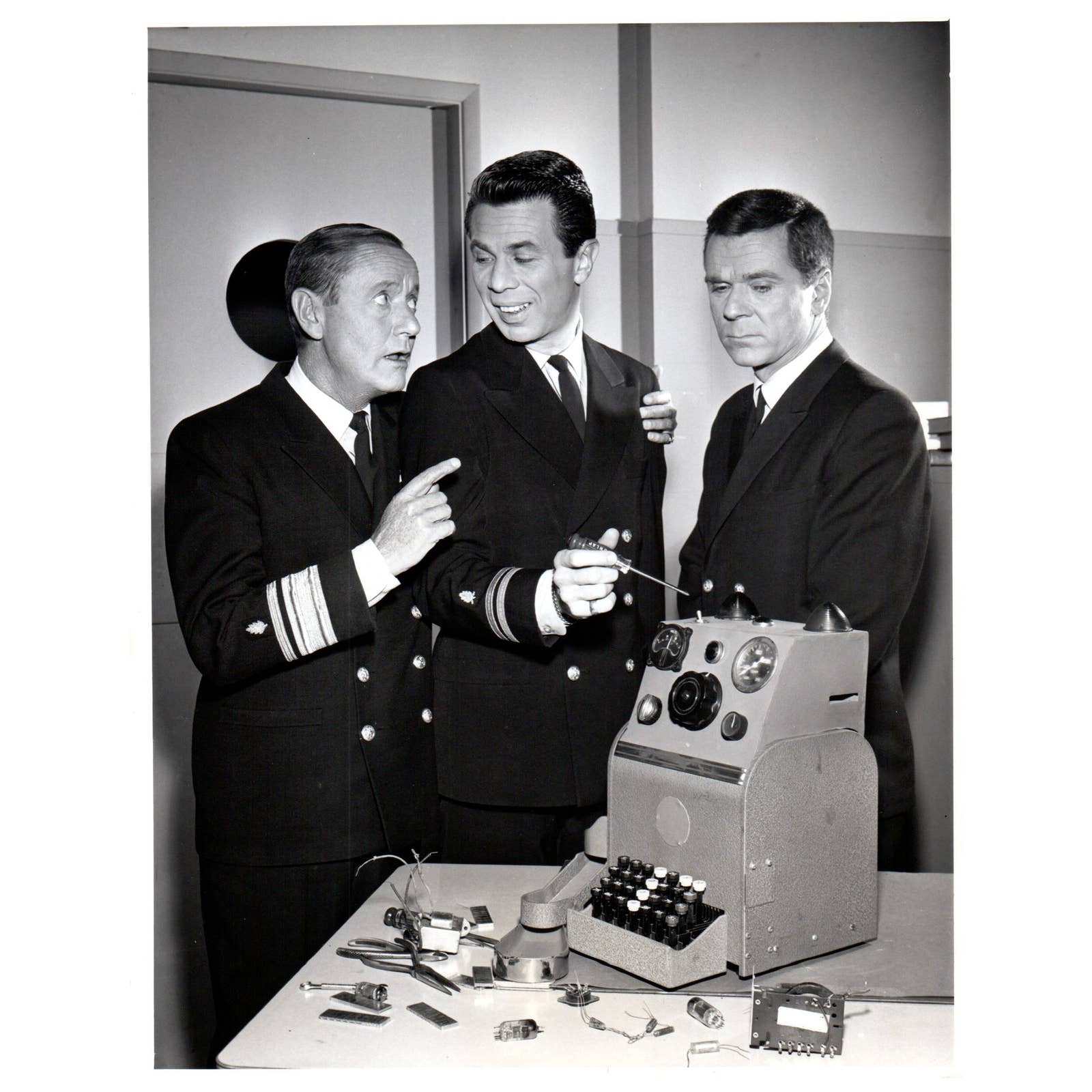 c1960 Press Photo Roscoe Karns James Komack Jackie Cooper Hennessy Harvey and His Electric Money Machine TJ7-2