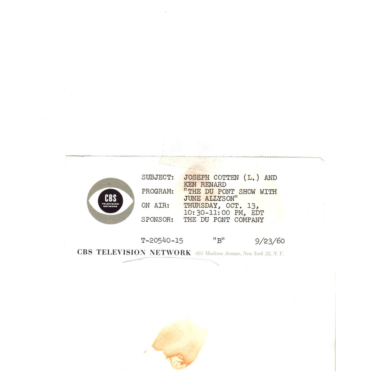c1960 Press Photo Ken Renard and Joseph Cotten in a scene from "Dark Fear" TJ7-2
