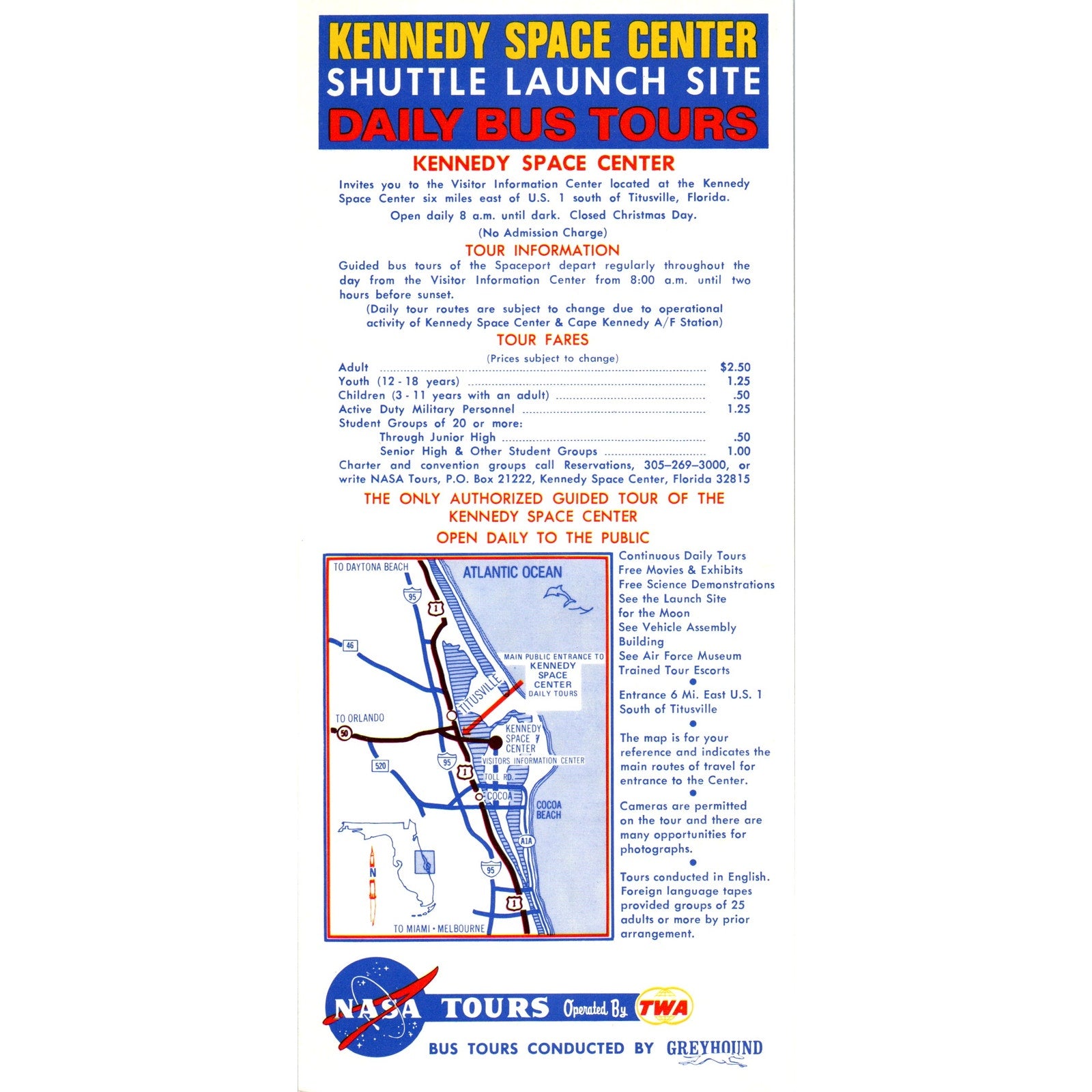 c1970 TWA Greyhound John F. Kennedy Space Center Tours Leaflet Card AF7-E2