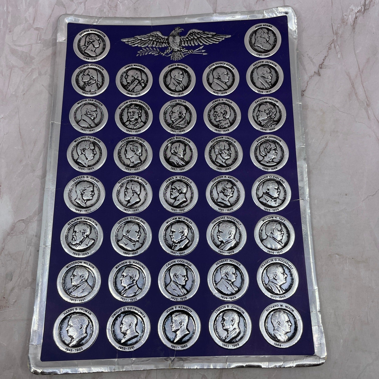c1970 Wall Hanging United States Seal 37 Presidents Embossed Blue & Foil FL6-11