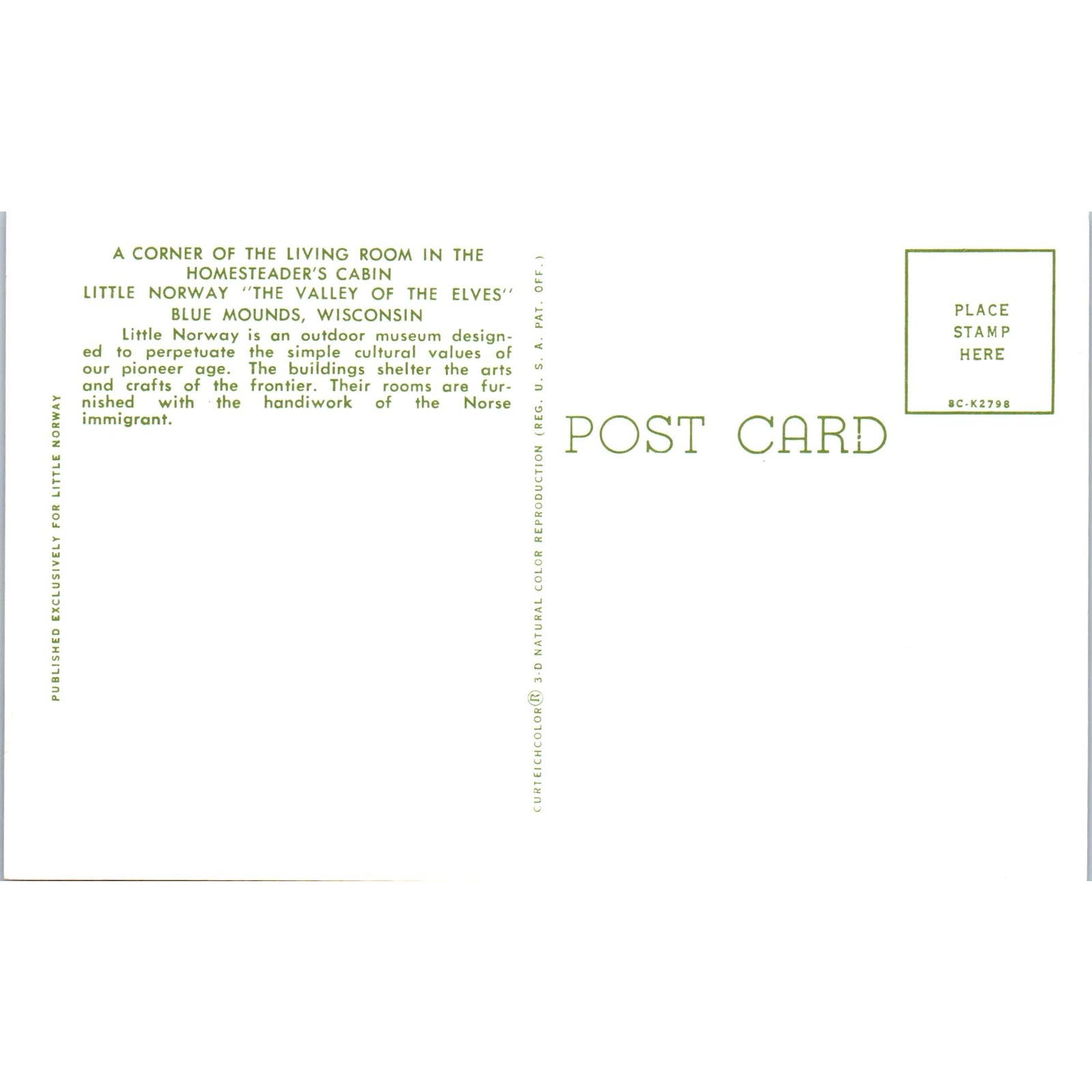 Cabin Living Room Little Norway Blue Mounds Valley of the Elves WI Original Postcard PB9