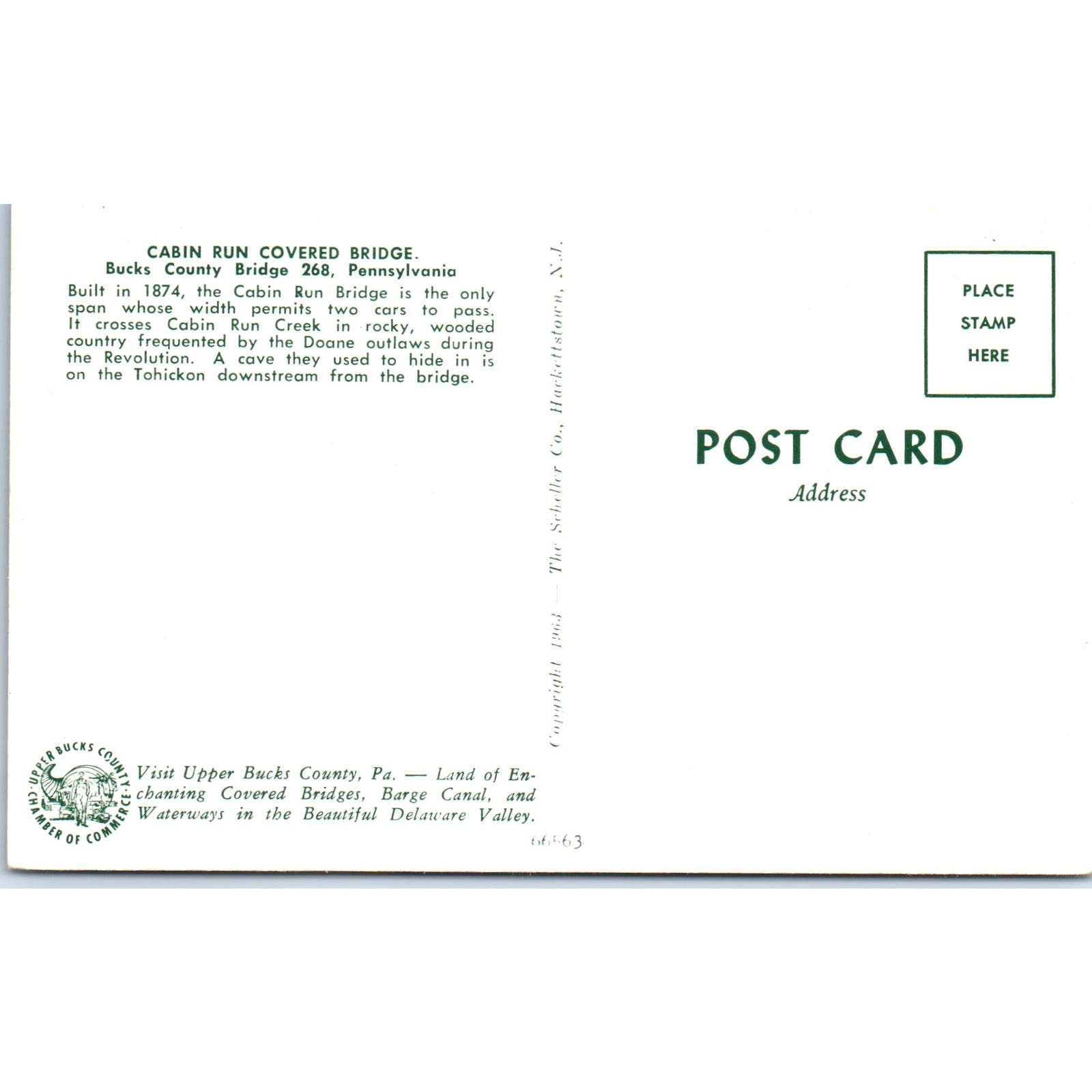 Cabin Run Bridge Bucks County 268 PA Vintage Covered Bridge Postcard PC17