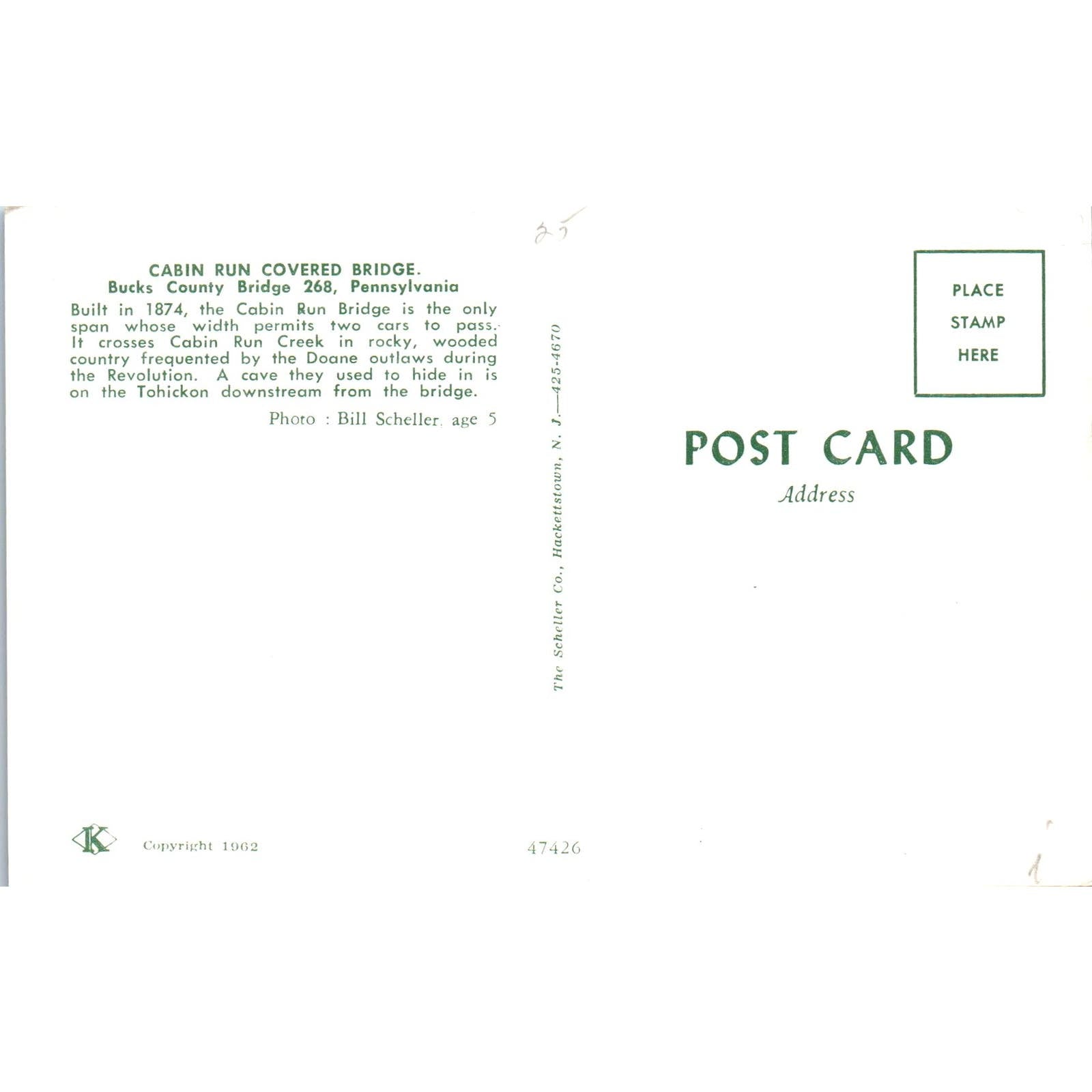 Cabin Run Bridge Bucks County 268 PACovered Bridge Postcard PC1