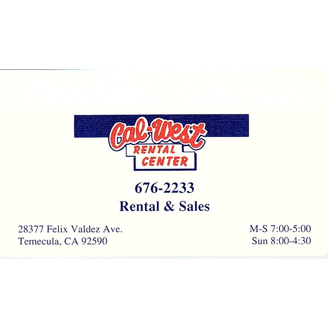 Cal-West Rental Center Temecula CA Vintage Business Card SC9-B8