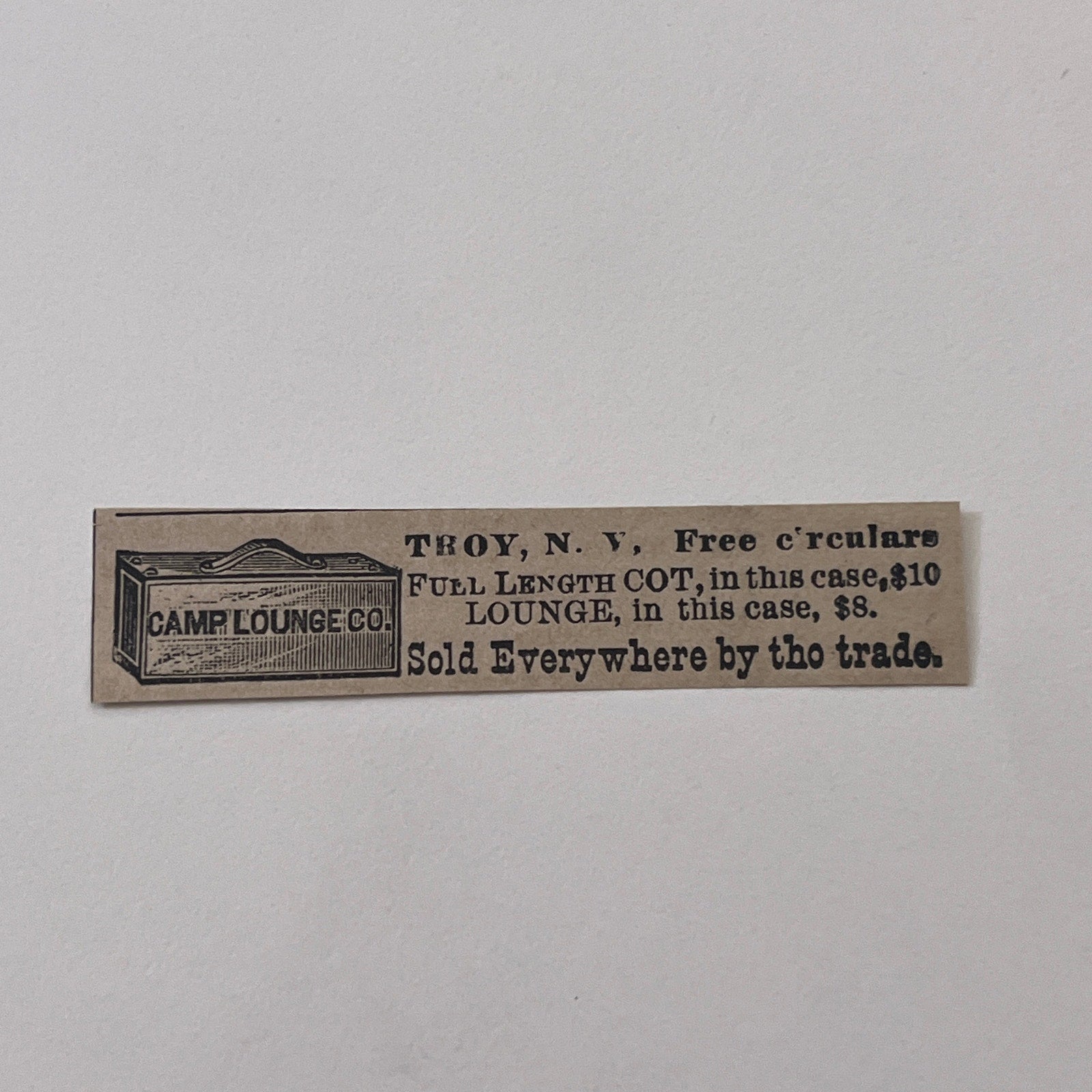 Camp Lounge Co Full Length Cot Troy New York 1878 Ad AG2-M16