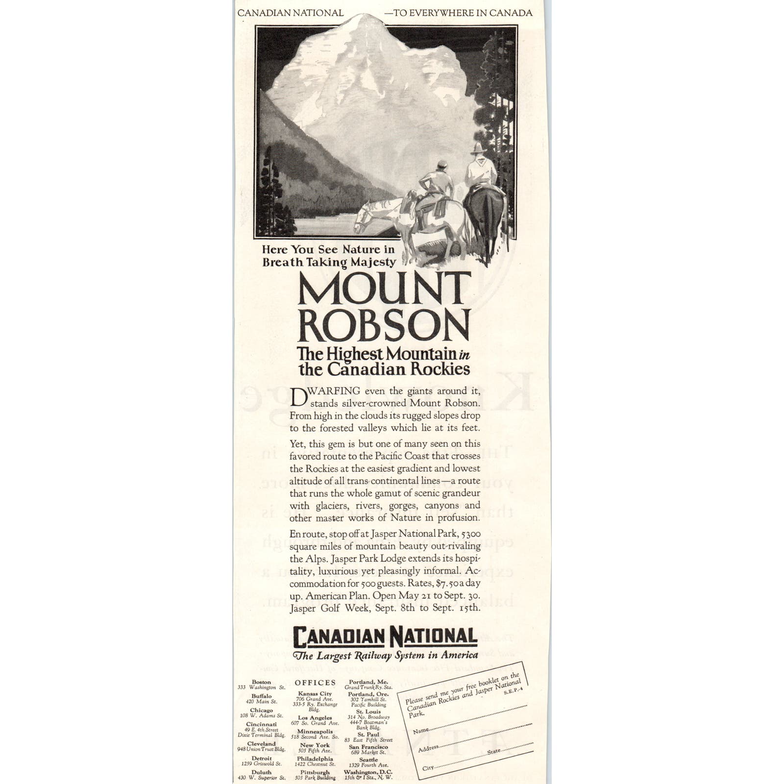 Canadian National Railway Mount Robson 1928 Original Magazine Advertisement FL6-8