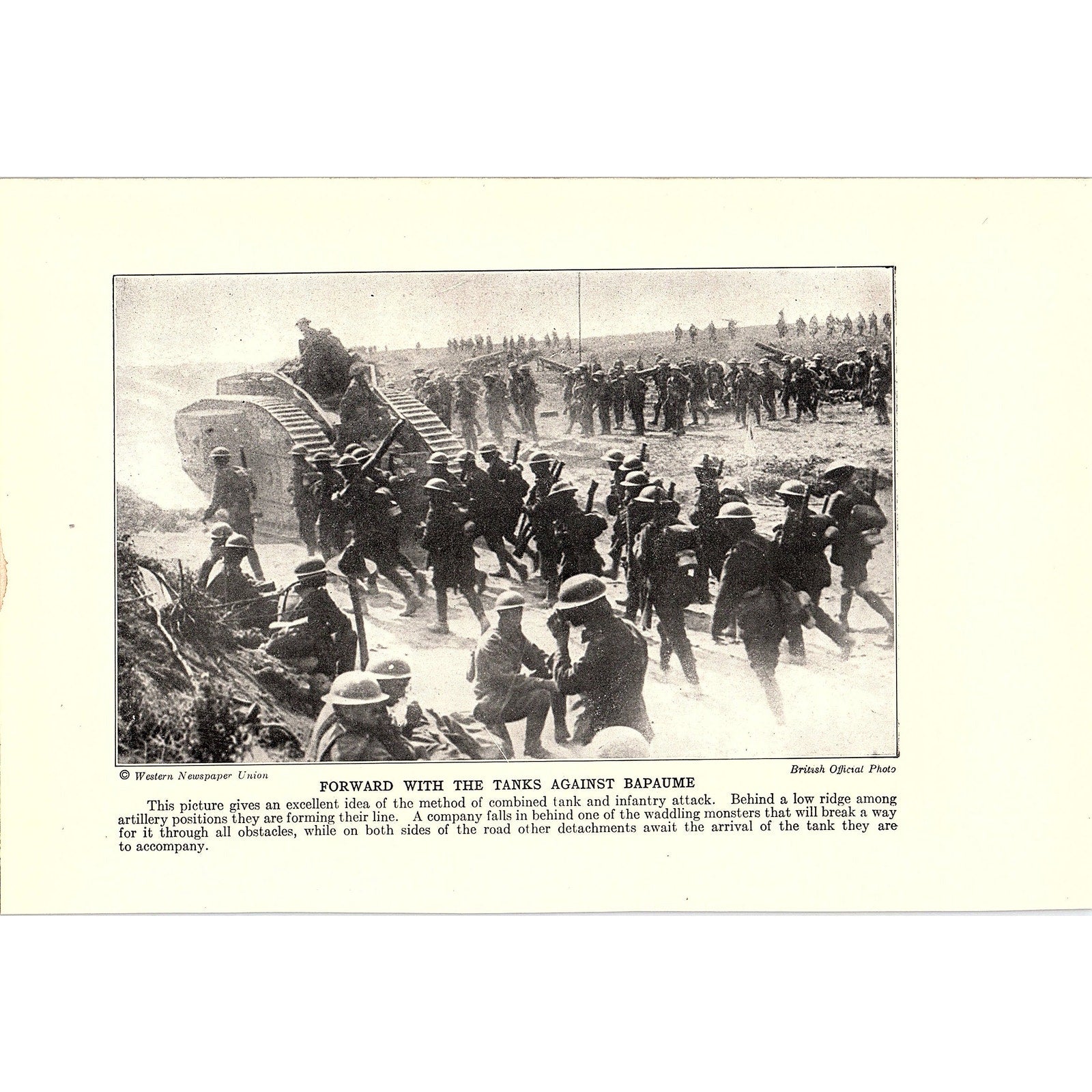 Canadians in Great Cambrai Drive / Tanks Against Bapaume 1919 WWI Print AG1-1