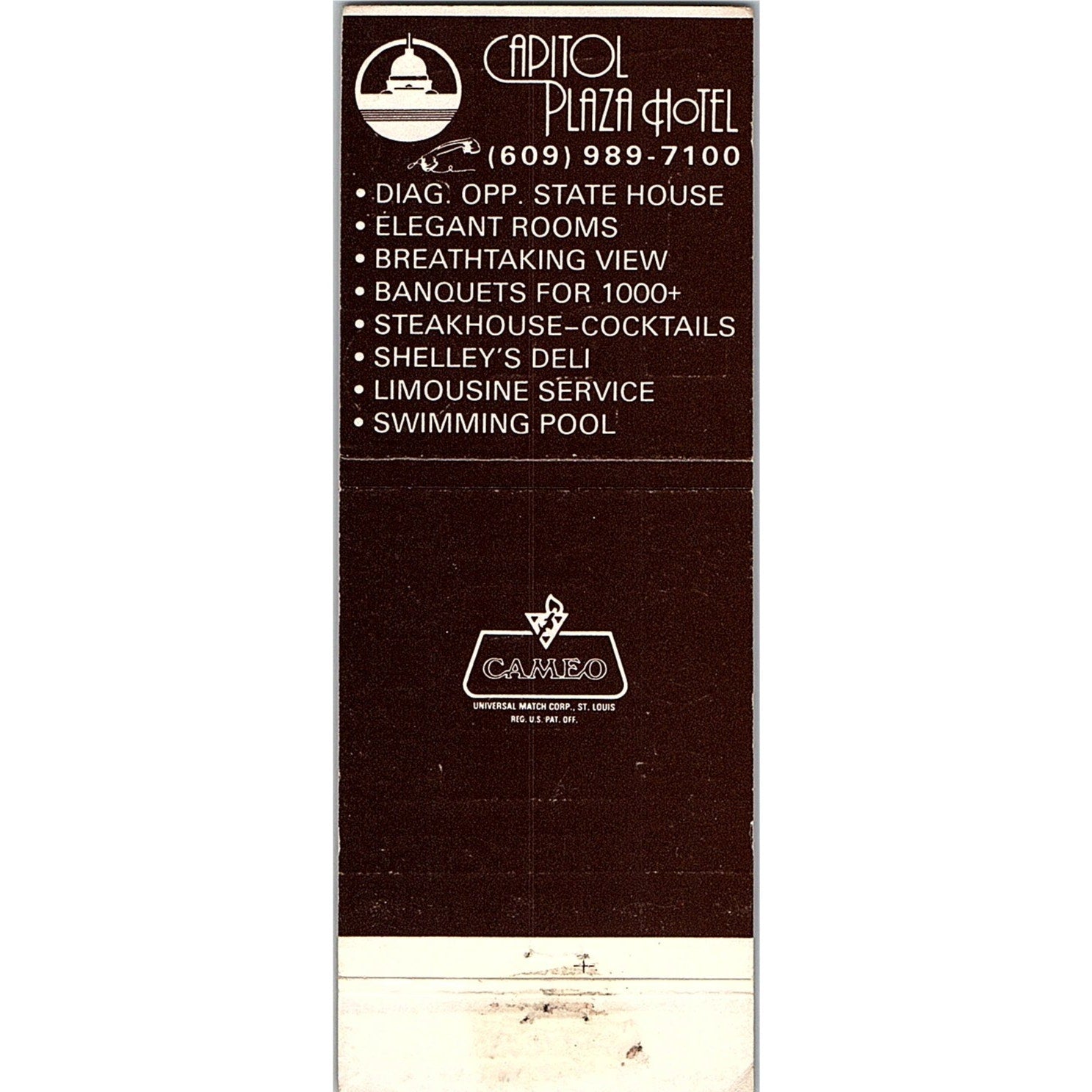 Capitol Plaza Hotel Trenton NJ Vintage Matchbook TB6-MB2-8