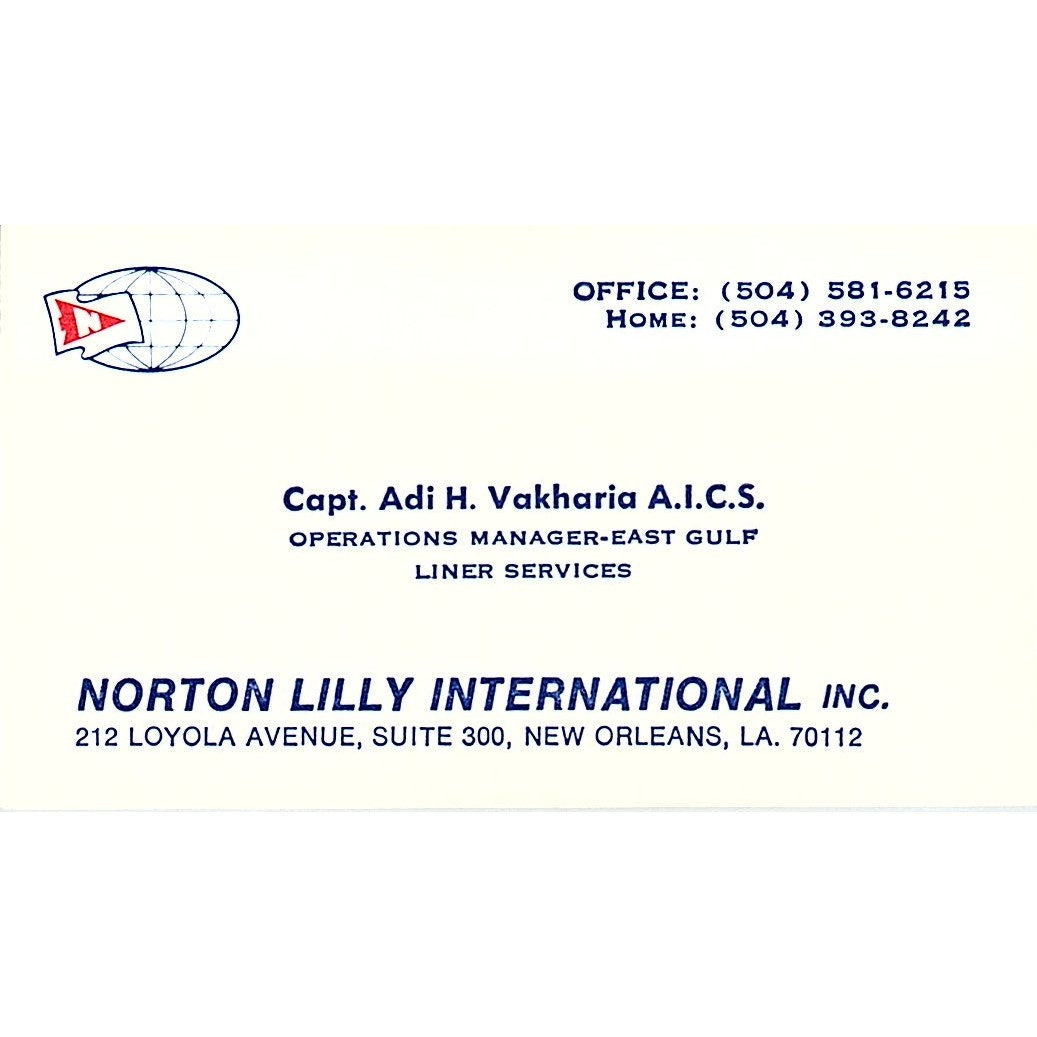 Capt Adi H Vakharia Norton Lilly Intl Inc New Orleans Vintage Business Card SC9-B3