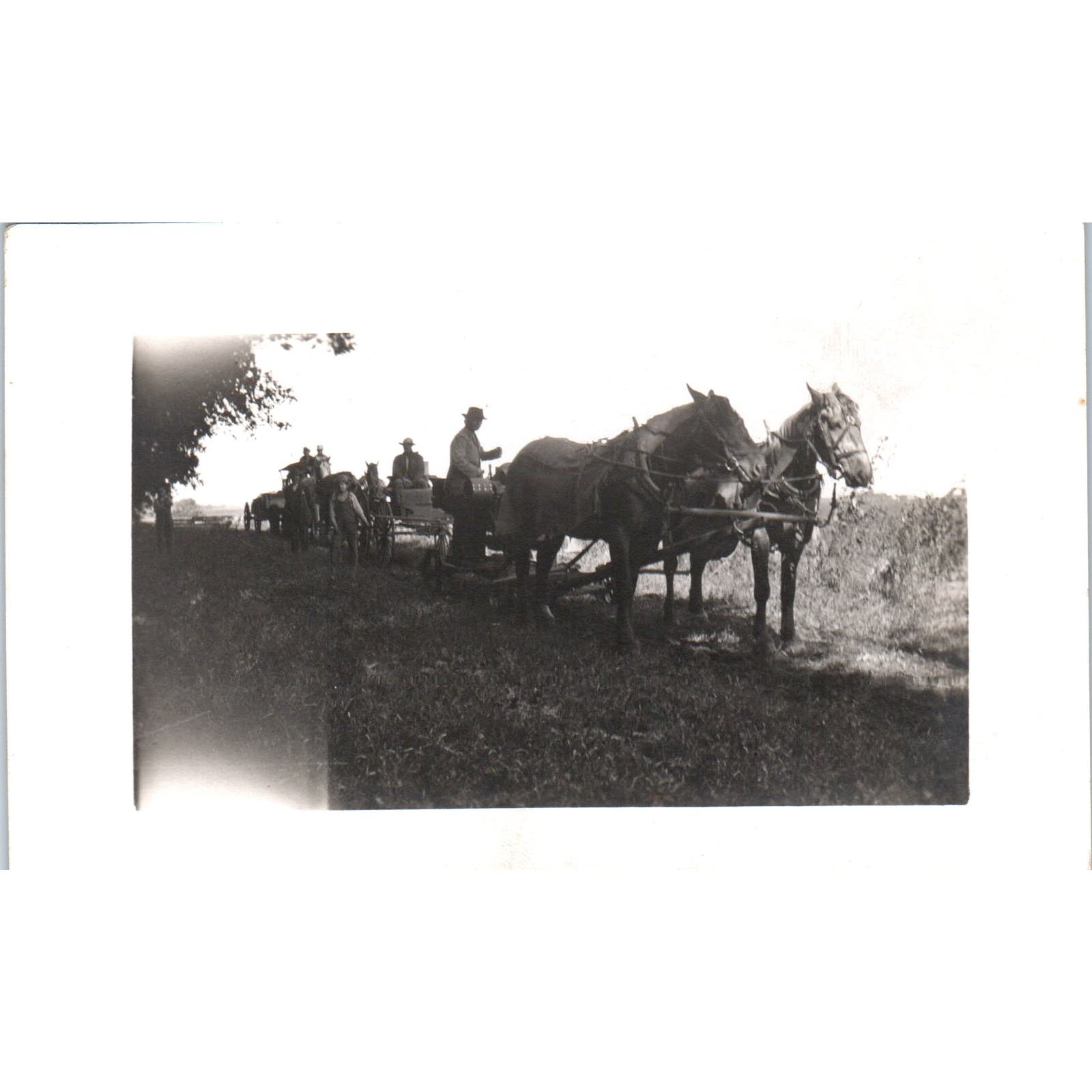 Caravan of Men in Horse Drawn Buggies c1910 RPPC Postcard AB9