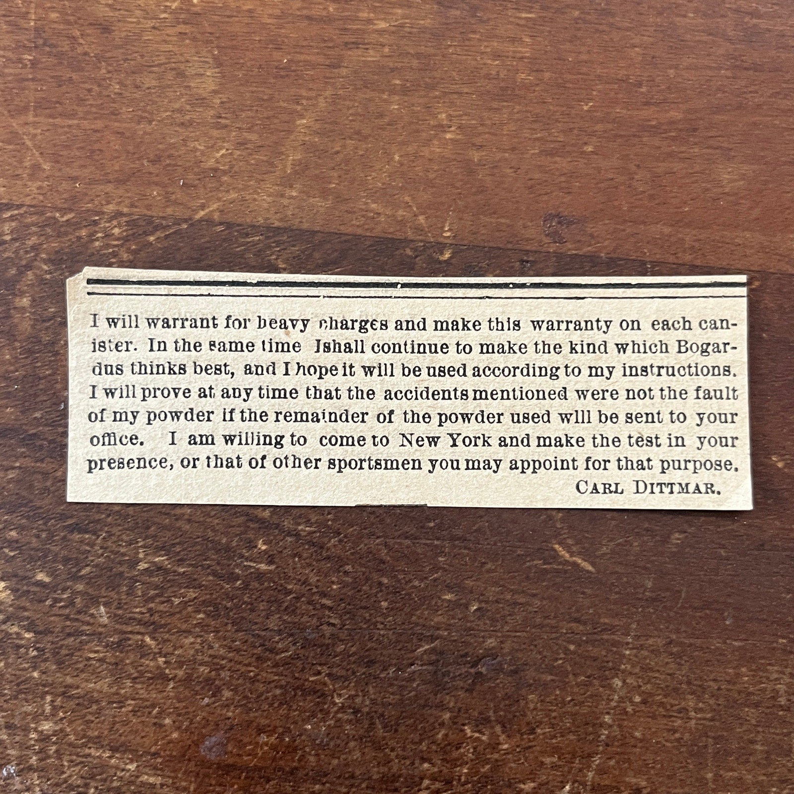 Carl Dittmar Gunpowder Bogardus 1878 Article AG2-S16