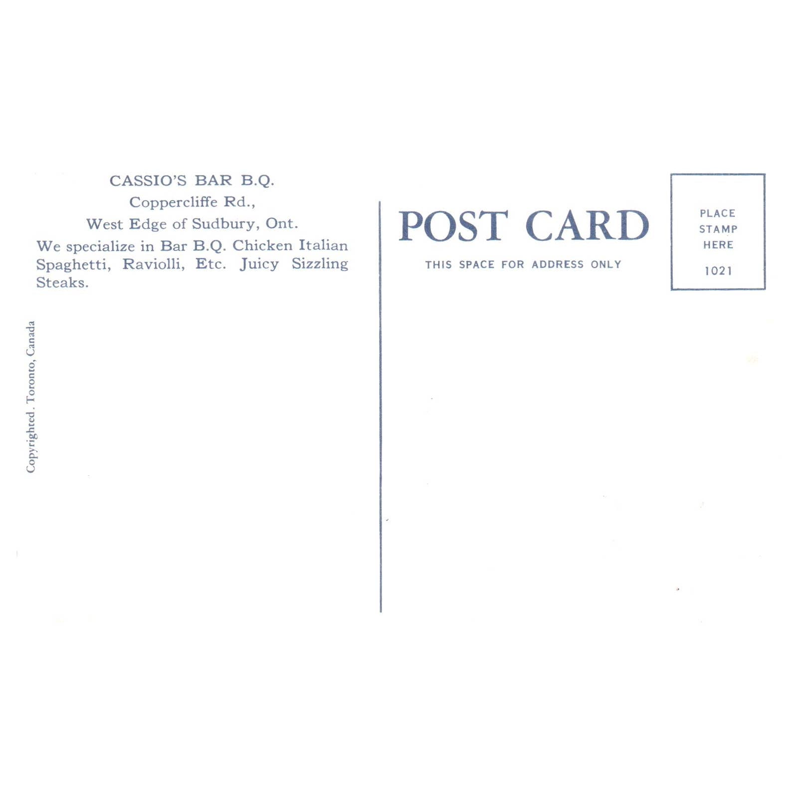 Cassio's Bar B.Q. Coppercliffe Rd Sudbury Ontario Canada - Postcard TJ8-2