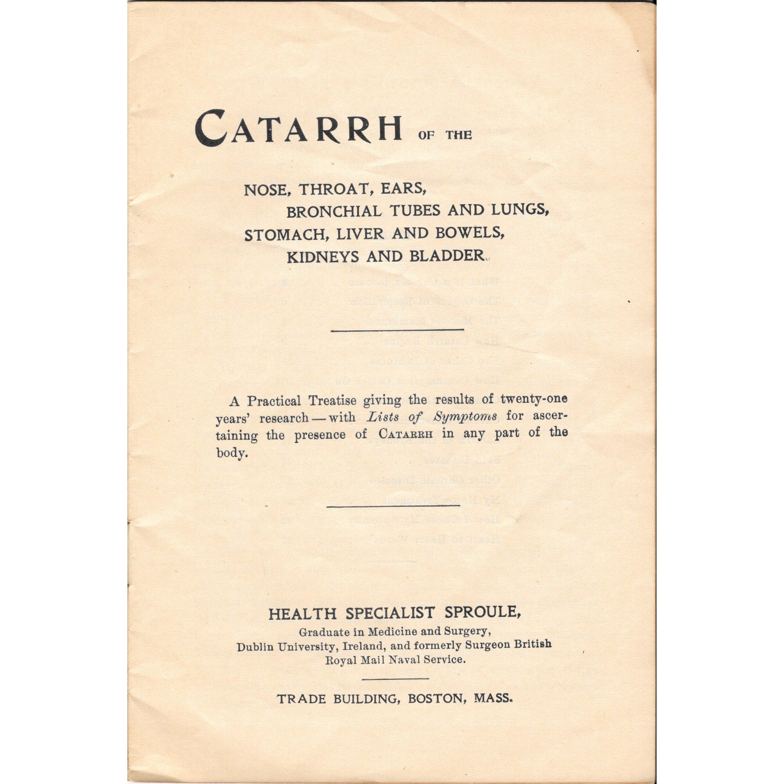 Catarrh Treatment Health Specialist Sproule Promo Booklet c1900 Original TK3-G