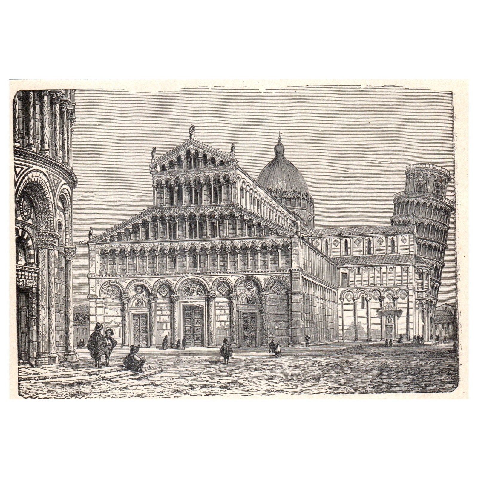 Cathedral of Pisa and Leaning Tower 1911 Engraving Print AF5-7