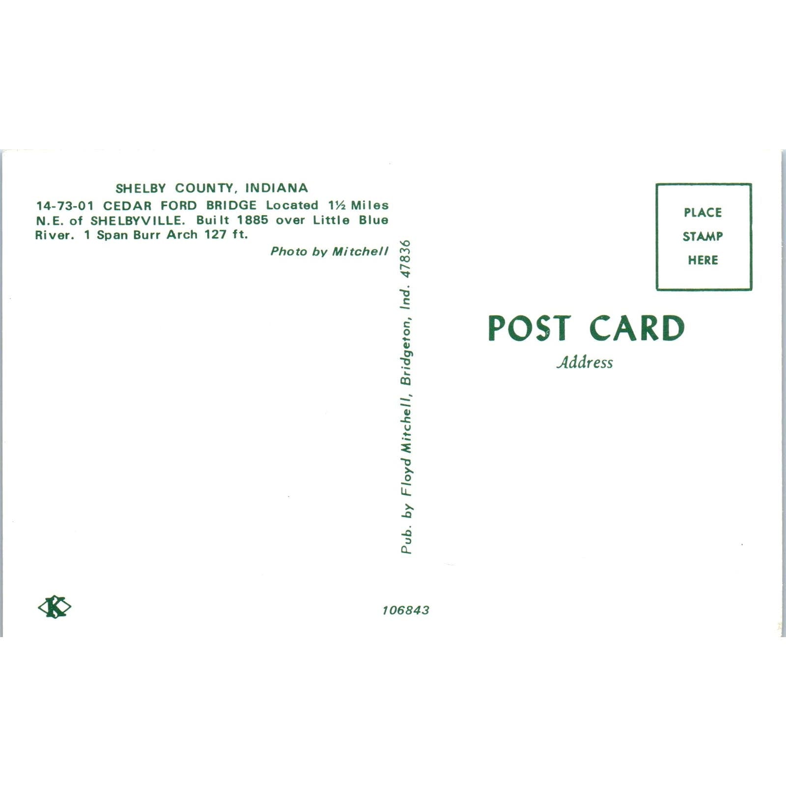 Cedar Ford Bridge Shelby County Indiana Covered Bridge Postcard PB10