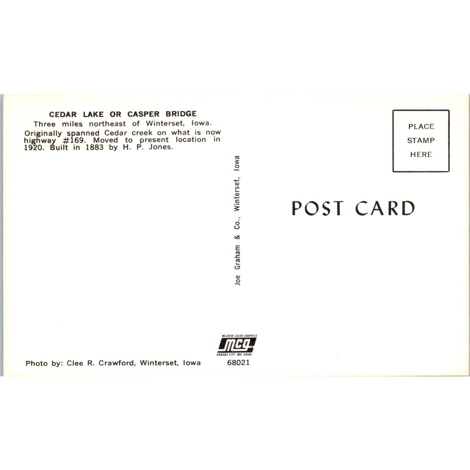 Cedar Lake or Casper Bridge Winterset IA Vintage Covered Bridge Postcard PC16