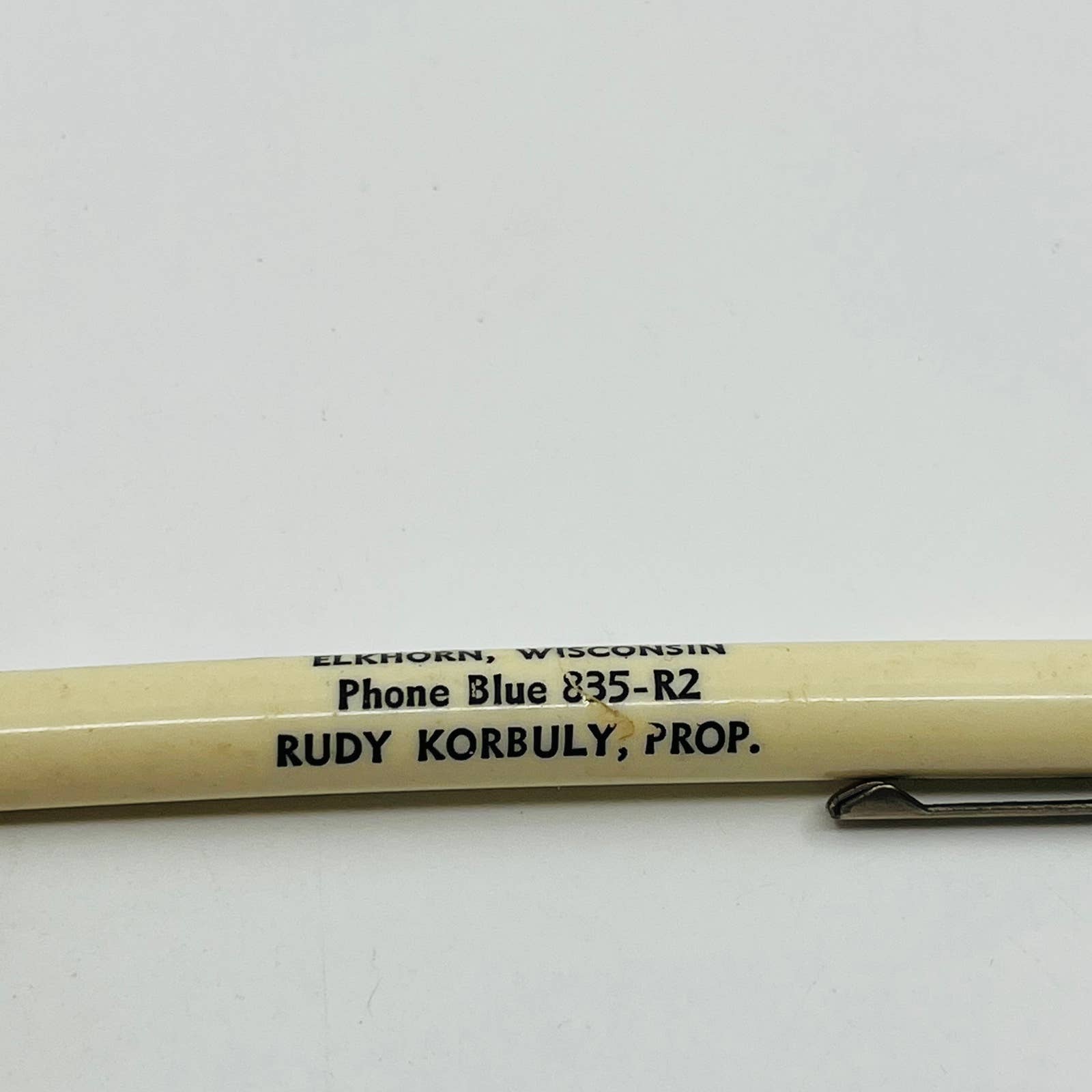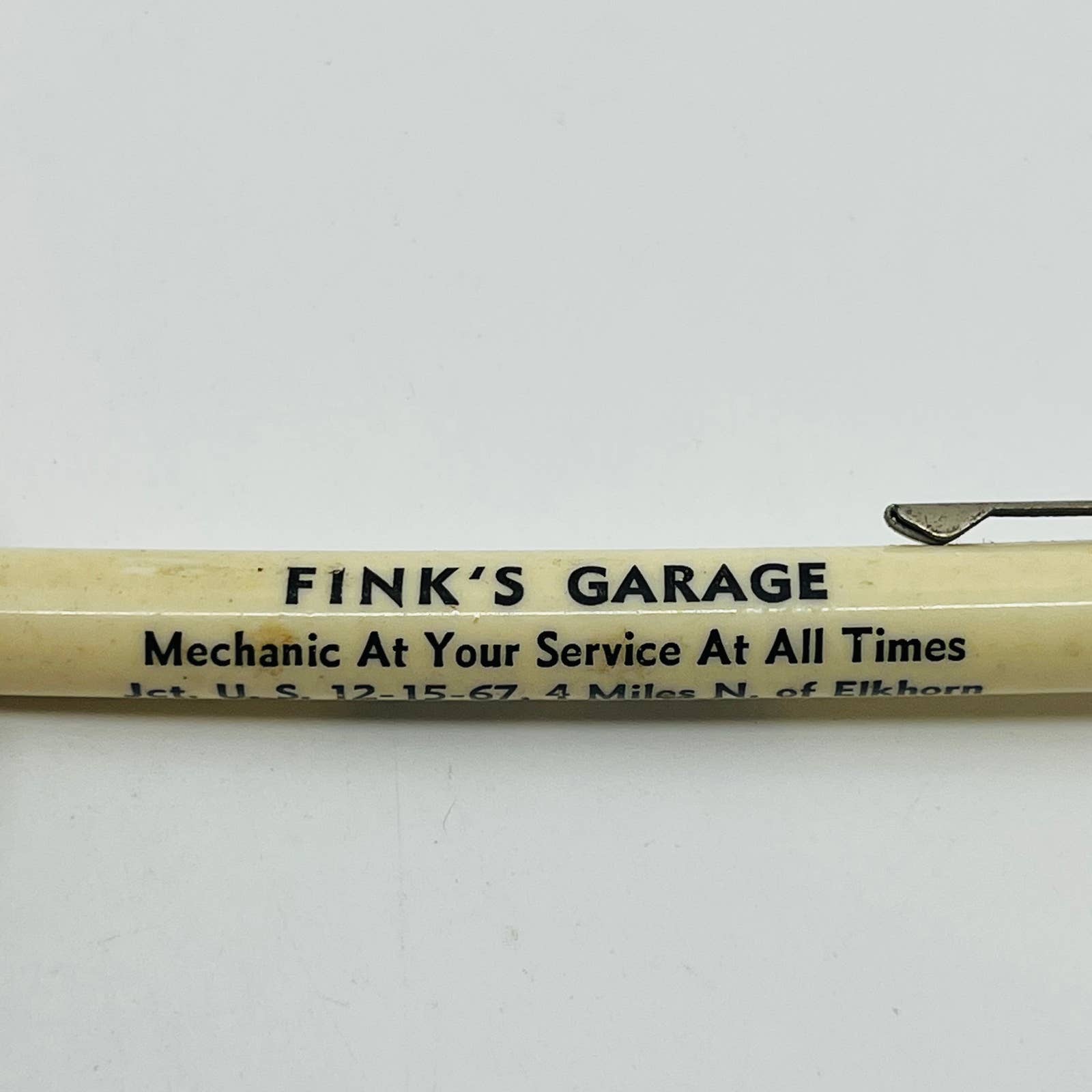 Celluloid Cream Mechanical Pencil FINK’S GARAGE Mechanic Elkhorn WI SB3