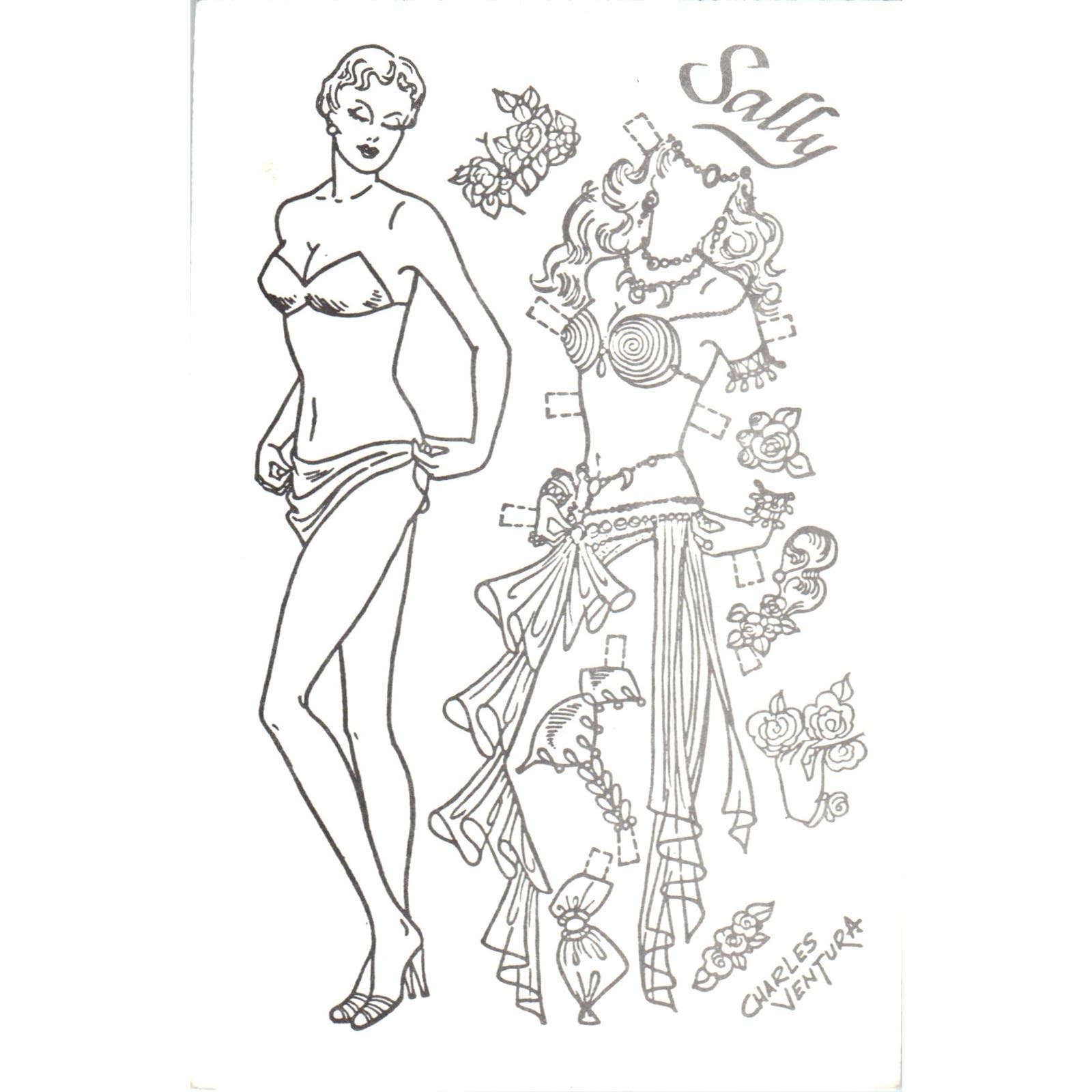 Charles Ventura Paper Doll Cut and Color "Sally" Postcard PB6
