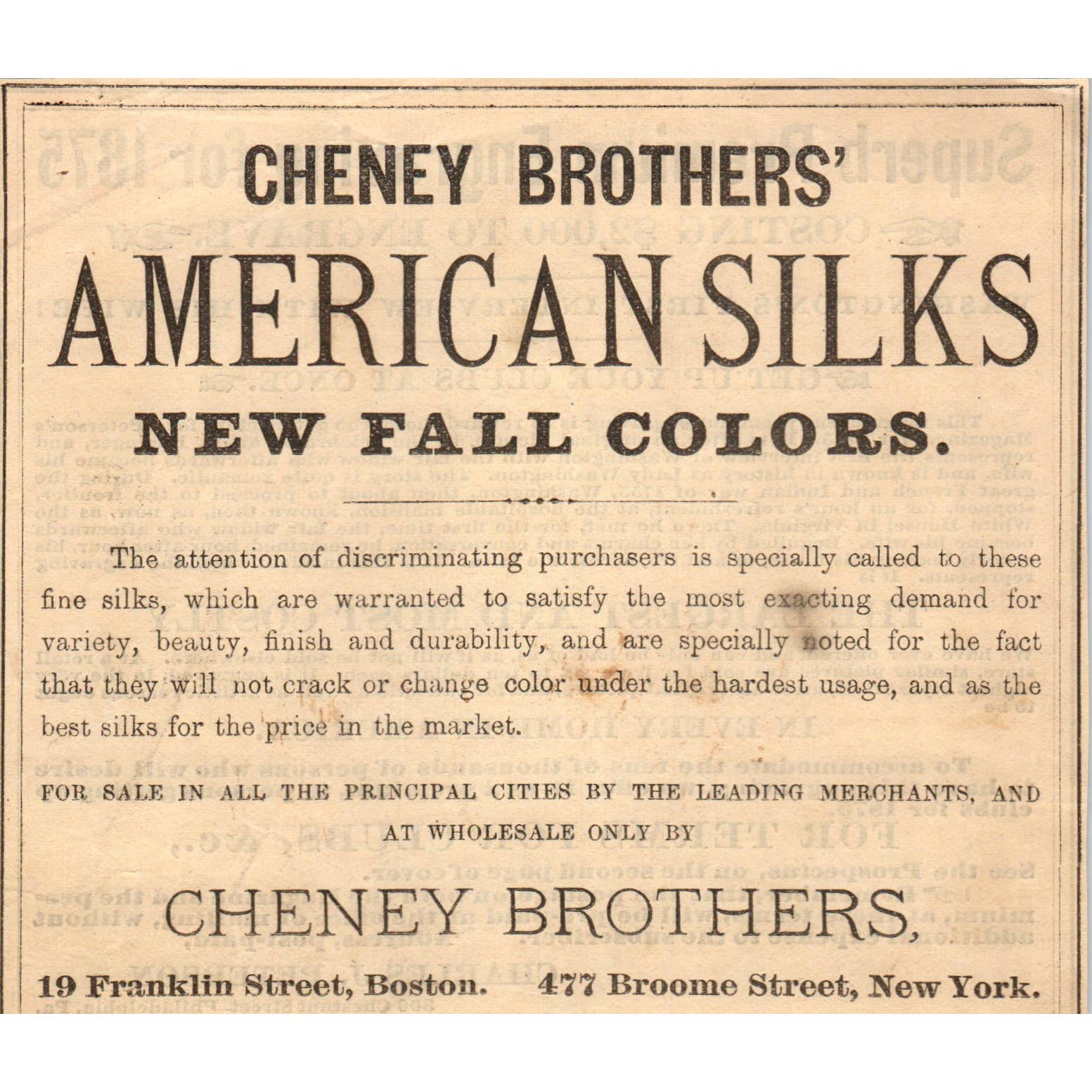 Cheney Brothers American Silks Boston NY - Victorian Ad 1878 Original TJ7-L2
