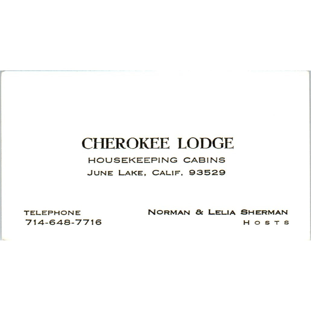 Cherokee Lodge Housekeeping Cabins June Lake CA Norman & Lelia Sherman Vintage Business Card SE3-B2