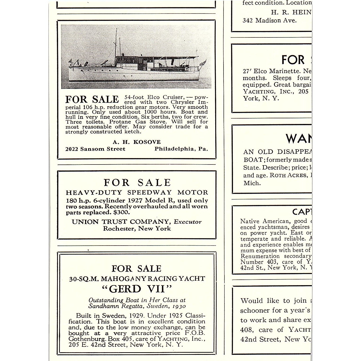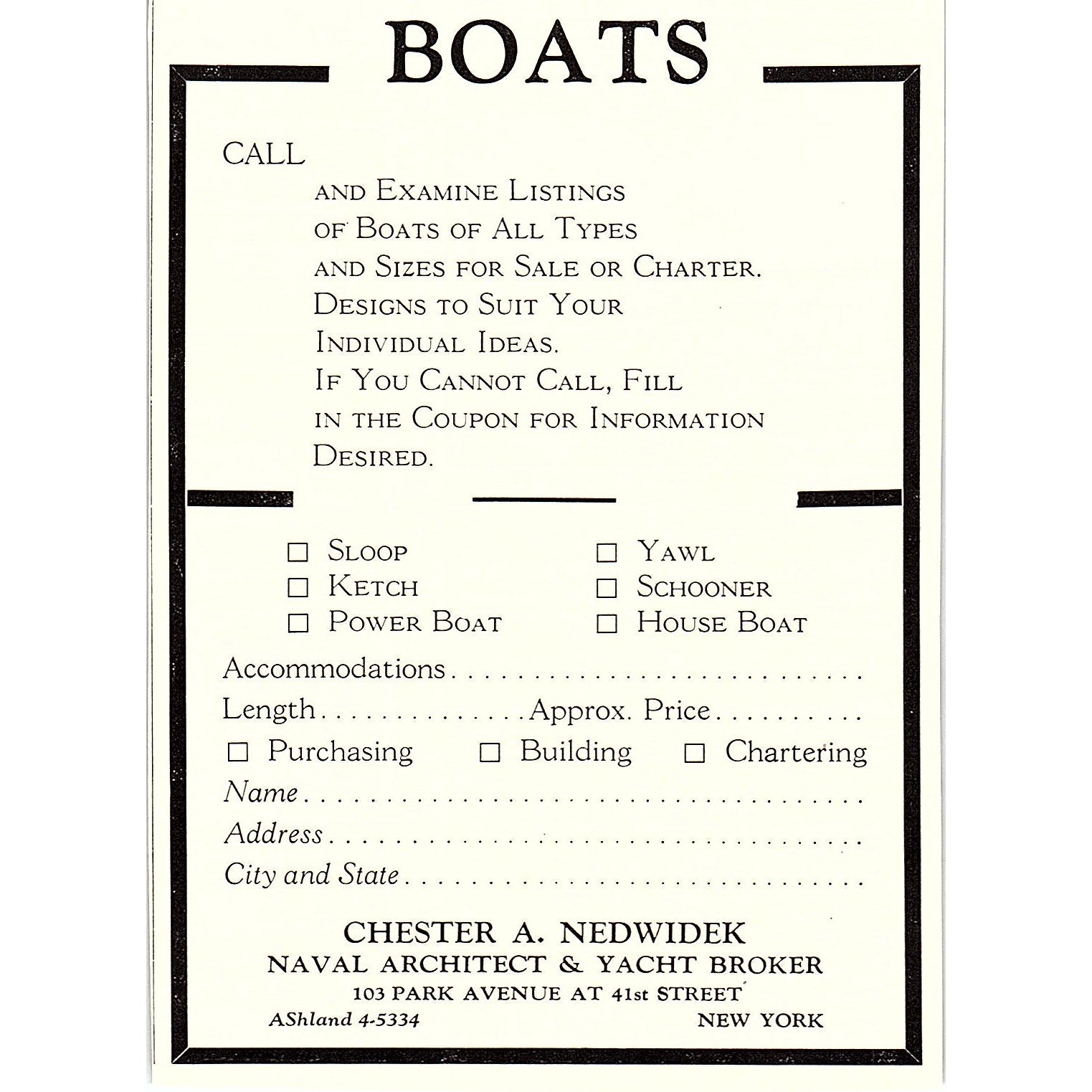 Chester A Nedwidek Naval Architect & Yacht Broker New York 1932 Ad AG2-M17