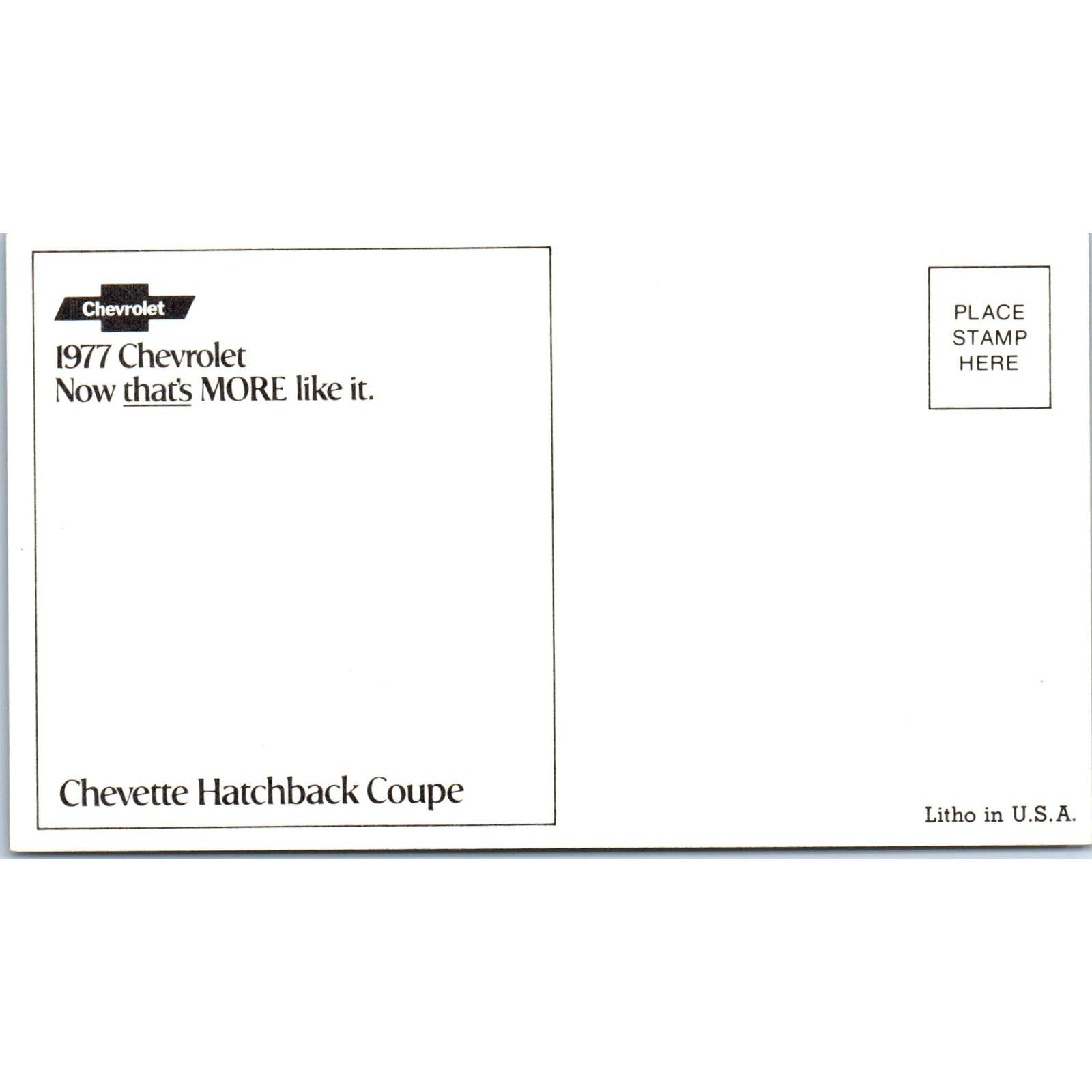 Chevrolet Chevy 1977 Chevette Hatchback Coupe Green Vintage Postcard PC12