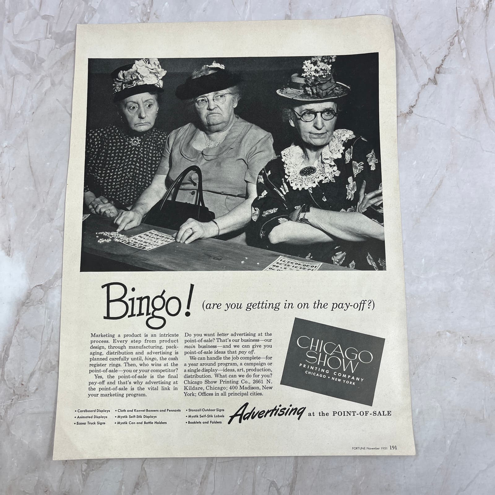 Chicago Show Printing Company Bingo 1951 Magazine Ad FL6-10