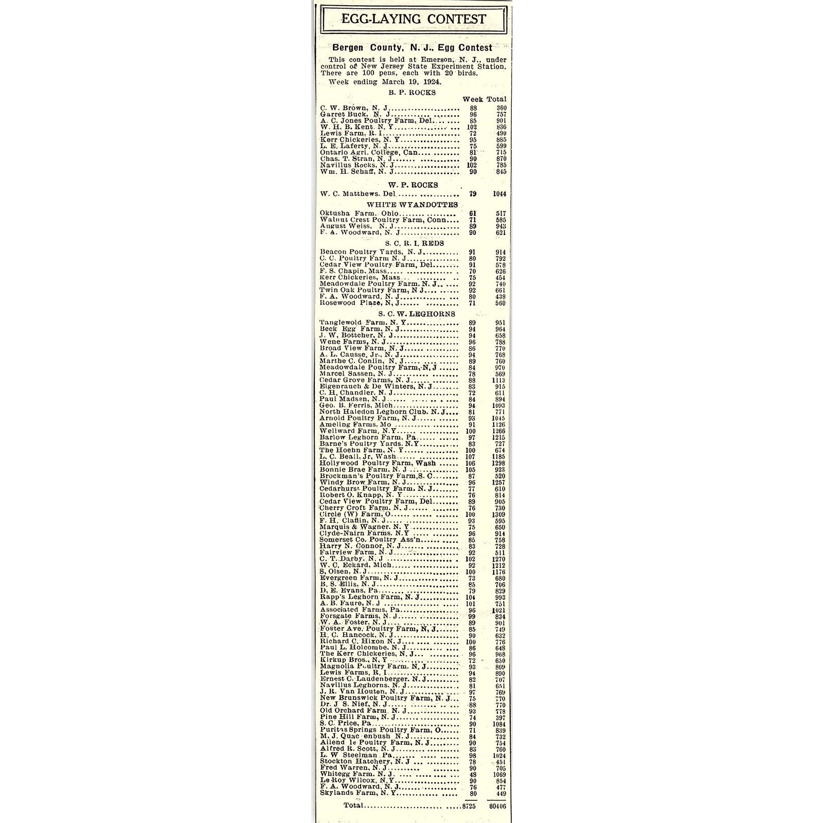 Chicken Egg Laying Contest Results Bergen County NJ March 19 1924 Ad AG3-4