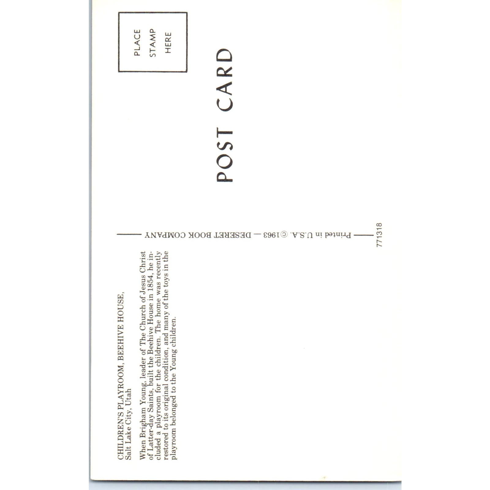 Children's Playroom Beehive House Salt Lake City Utah Original Postcard PB7