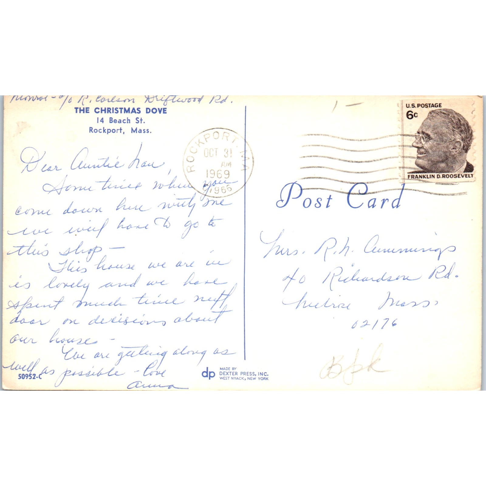 Christmas Tree and Dolls - The Christmas Dove Rockport MA Original Postcard PB7