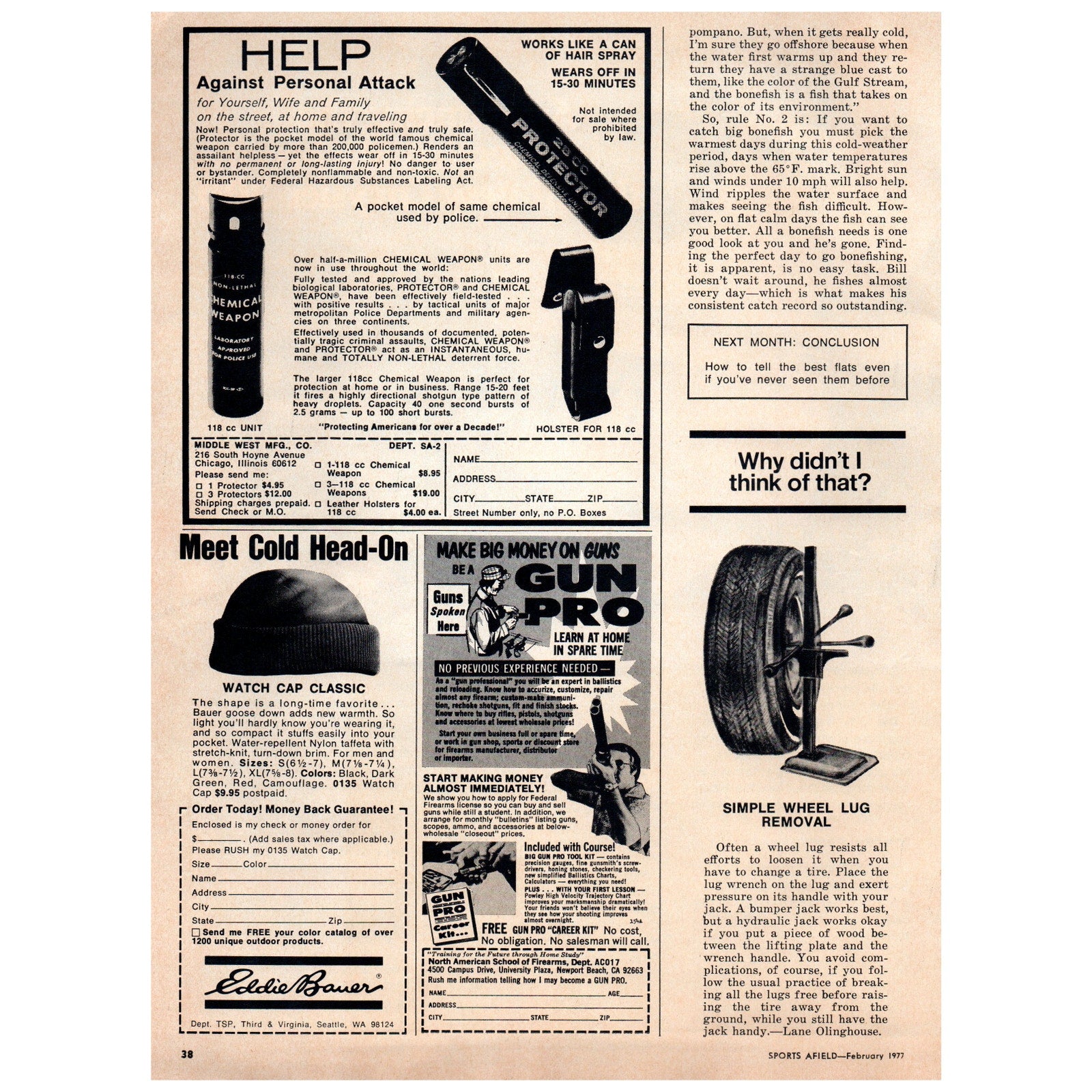 Has a ripple. Measures approx 8x11. Original piece from Feb 1977 Sports Afield Magazine. There be some light staining, tears, and/or other signs of wear and tear. See pics for condition.