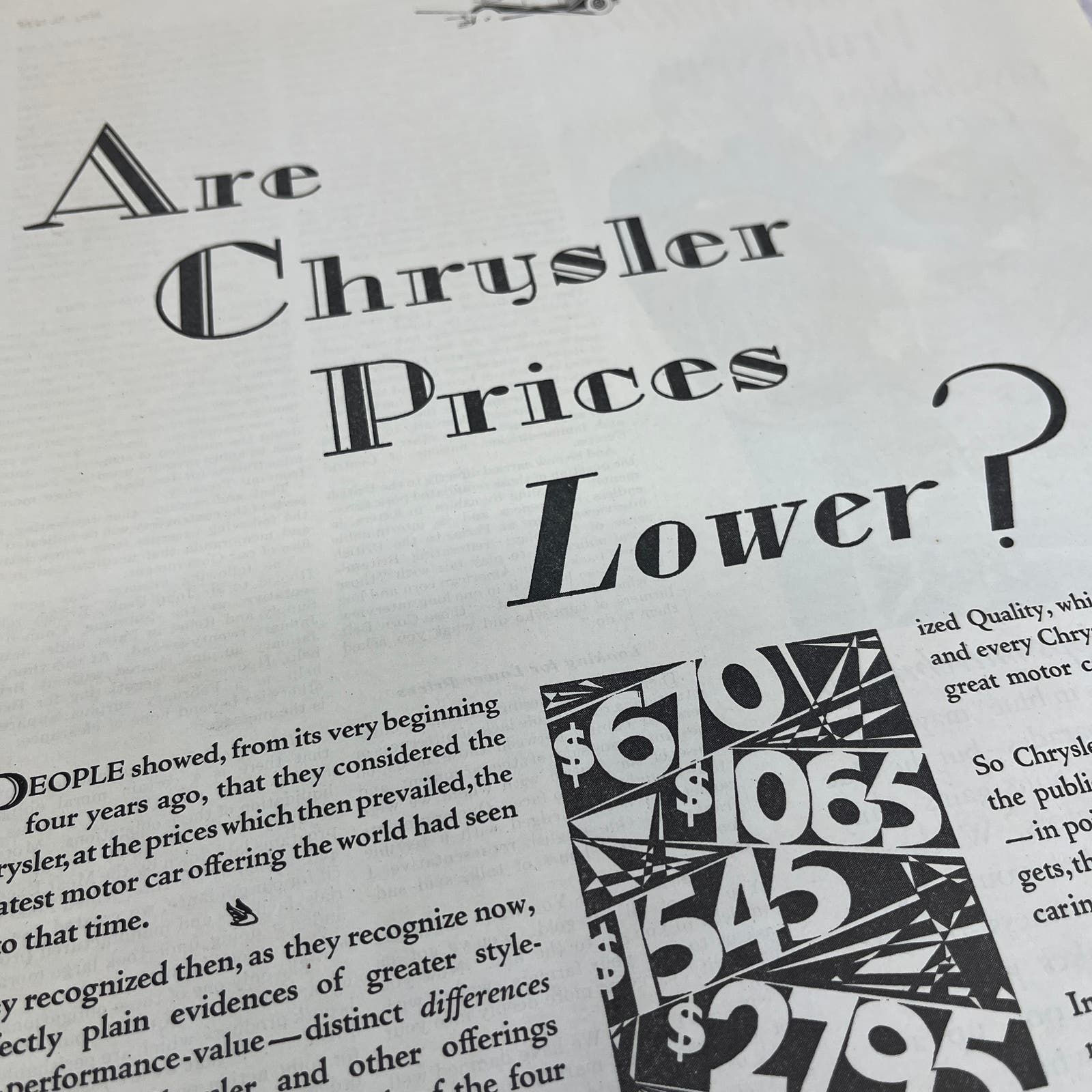 Chrysler Prices Detroit MI 1928 Original Magazine Advertisement FL6-8