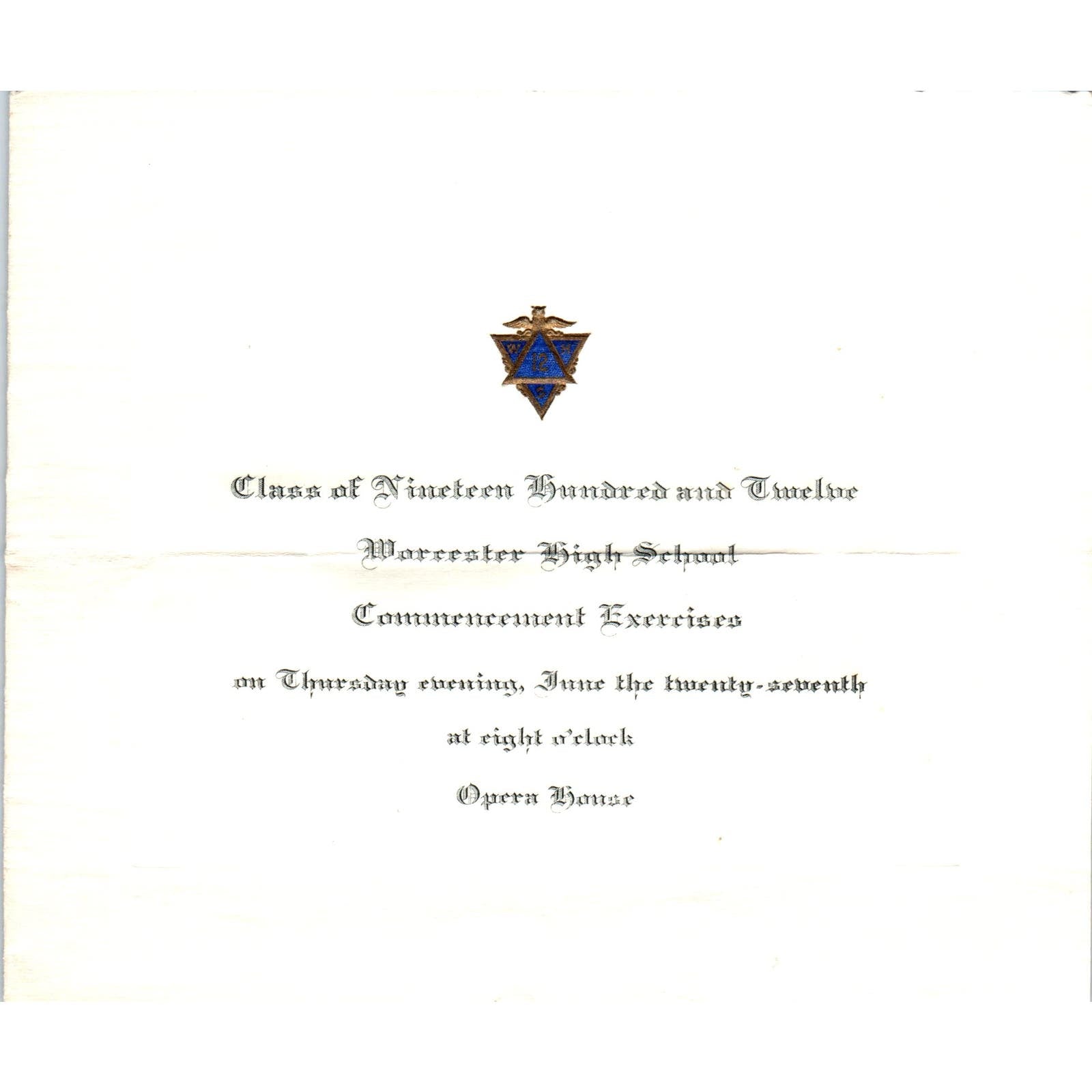 Class of 1912 Worcester High School Graduation Commencement Program AE6