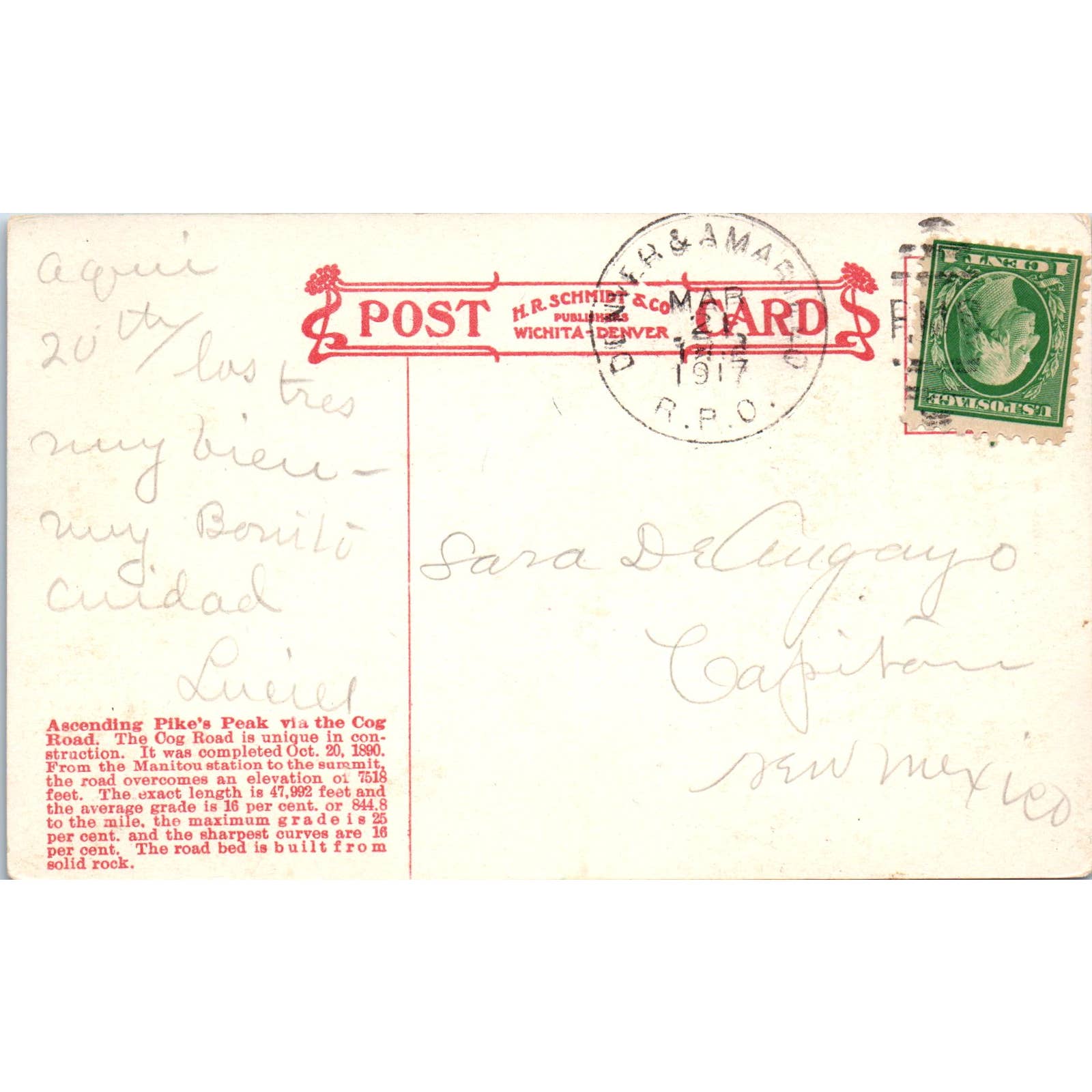 Cog Road Pikes Peak Colorado Springs Colorado 1917 Original Postcard TJ9-P2