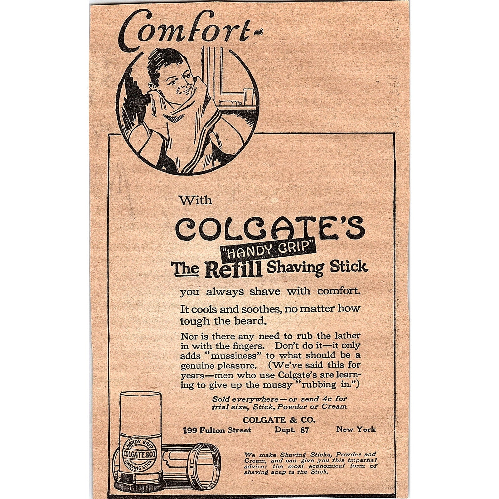 Colgate Handy Grip Refill Shaving Stick Colgate & Co NY 1920 Ad AG2-6