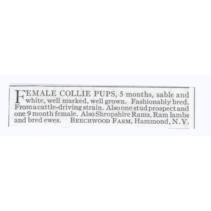 Collie Pups Beechwood Farm Hammond NY 1913 Magazine Advertisement AE7-N8