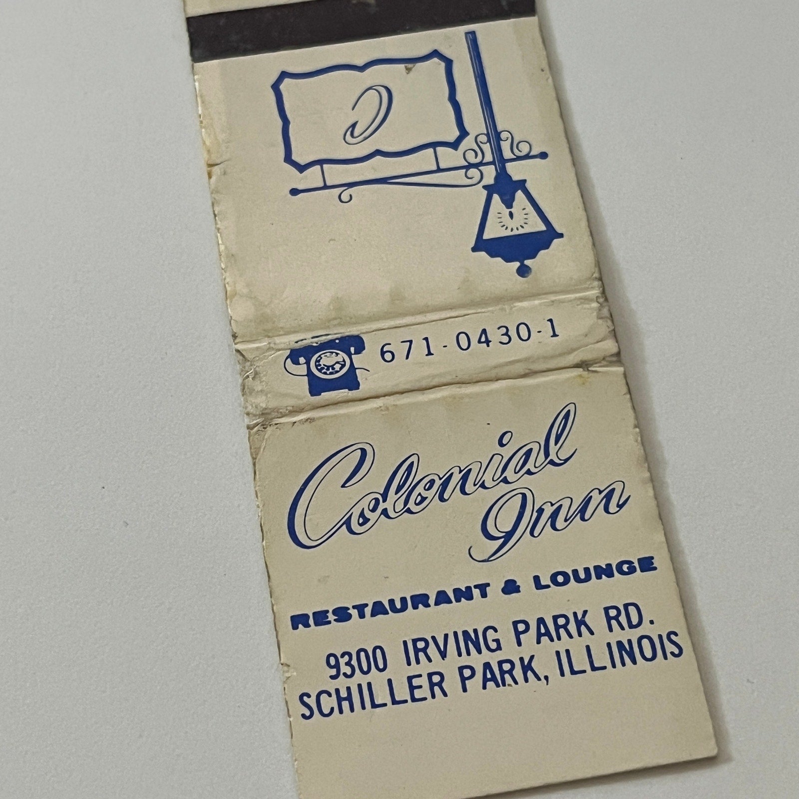 Colonial Inn Restaurant & Lounge Schiller Park IL Vintage Matchbook Cover TB6-MB2-6